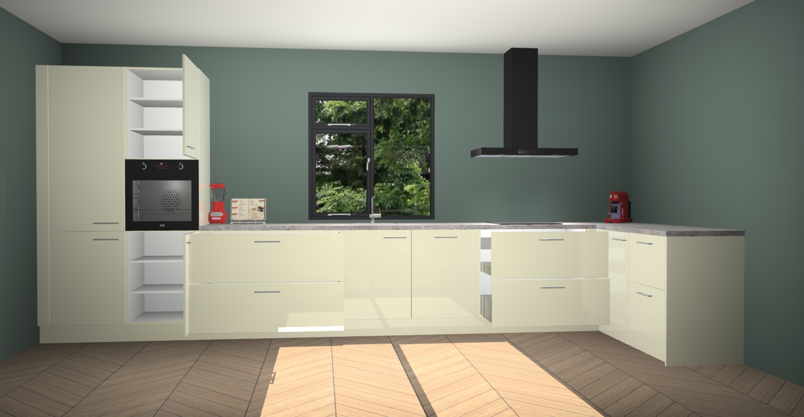 De Magnolia hoogglans keuken Lille wordt geleverd met vijf inbouwapparaten - een oven, inductiekookplaat, afzuigkap, vaatwasser en koelkast. Maar dat is nog niet alles! Na bestelling kunnen deze apparaten eenvoudig worden geüpgraded naar premium AEG-apparatuur. Bovendien is er zelfs de optie om de oven te vervangen door een combimagnetron of uw inductiekookplaat te vervangen door een kookplaat met geïntegreerde afzuiging.