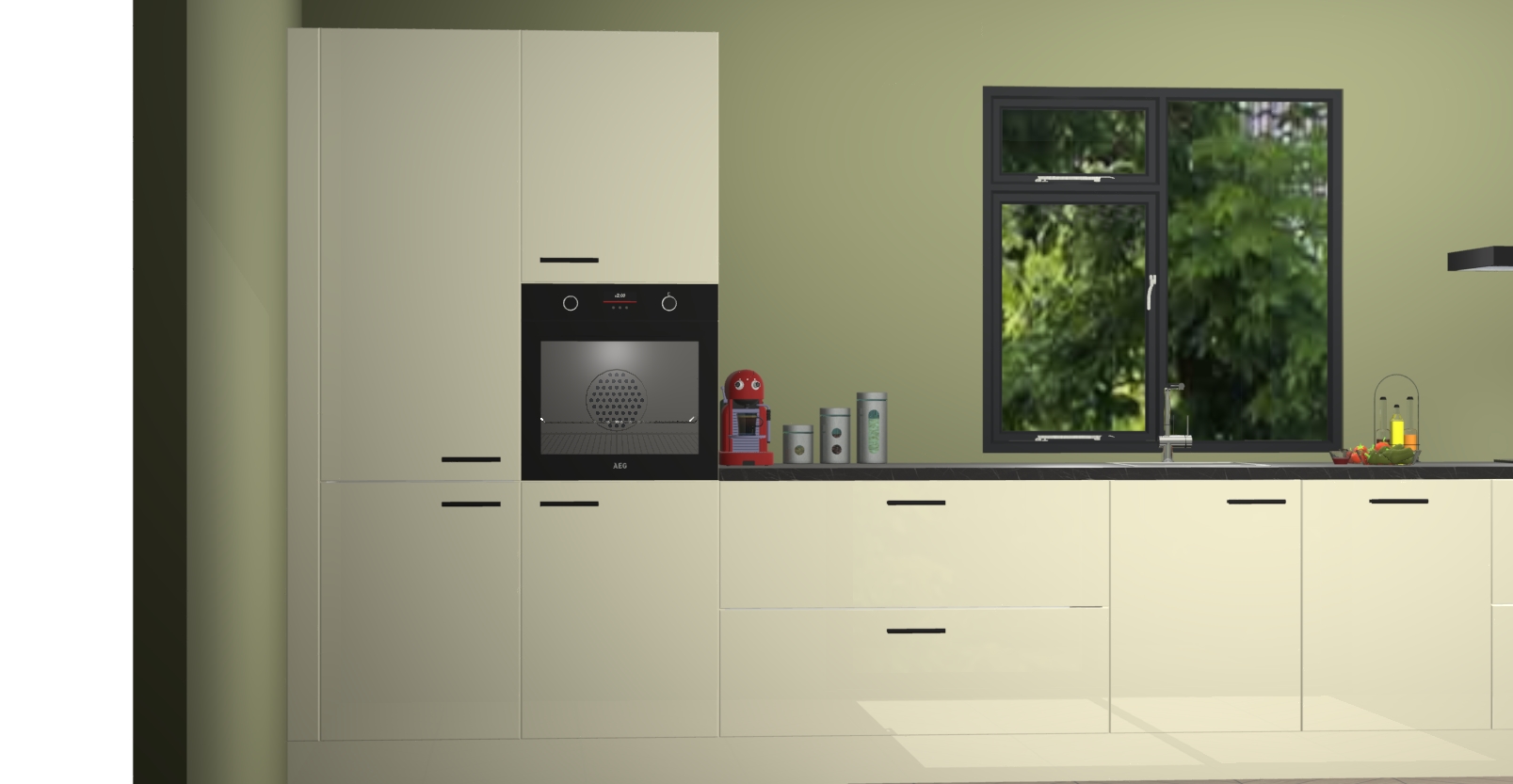 De Magnolia hoogglans keuken Lille wordt geleverd met vijf inbouwapparaten - een oven, inductiekookplaat, afzuigkap, vaatwasser en koelkast. Maar dat is nog niet alles! Na bestelling kunnen deze apparaten eenvoudig worden geüpgraded naar premium AEG-apparatuur. Bovendien is er zelfs de optie om de oven te vervangen door een combimagnetron of uw inductiekookplaat te vervangen door een kookplaat met geïntegreerde afzuiging.