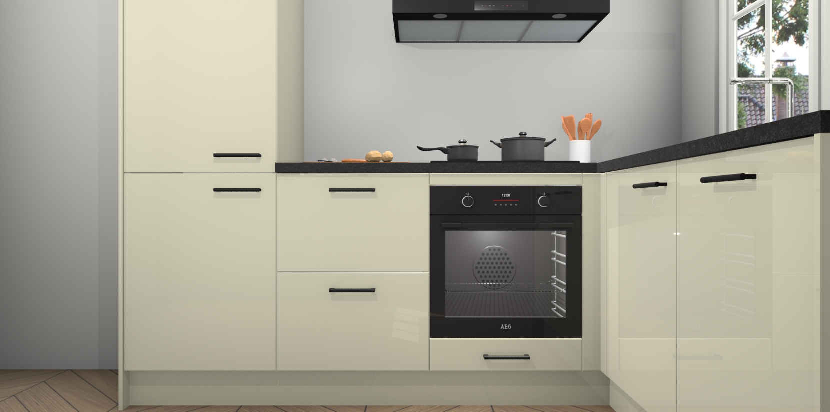 Inclusief plinten, stelpoten en werkblad