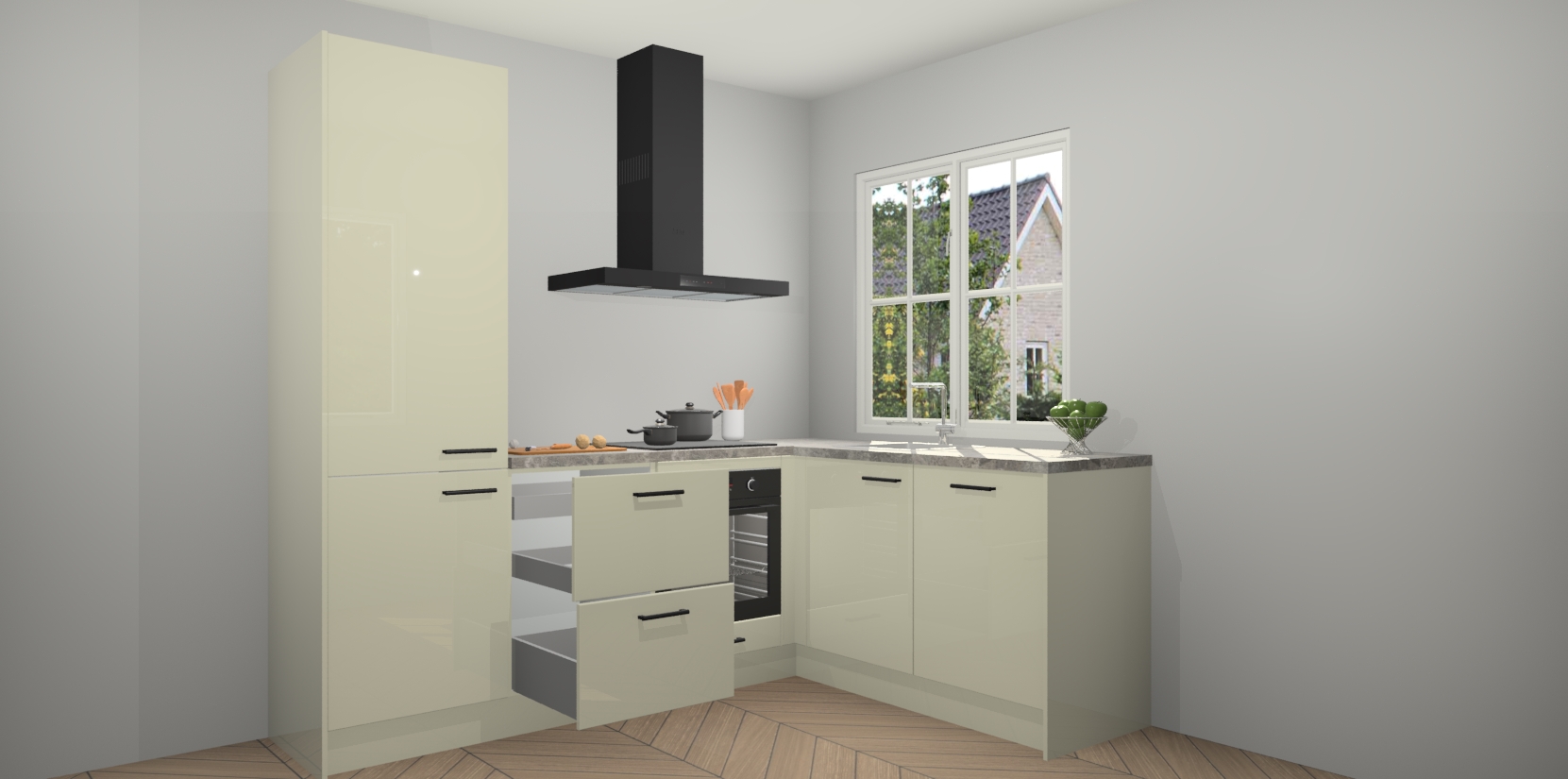 Inclusief plinten, stelpoten en werkblad