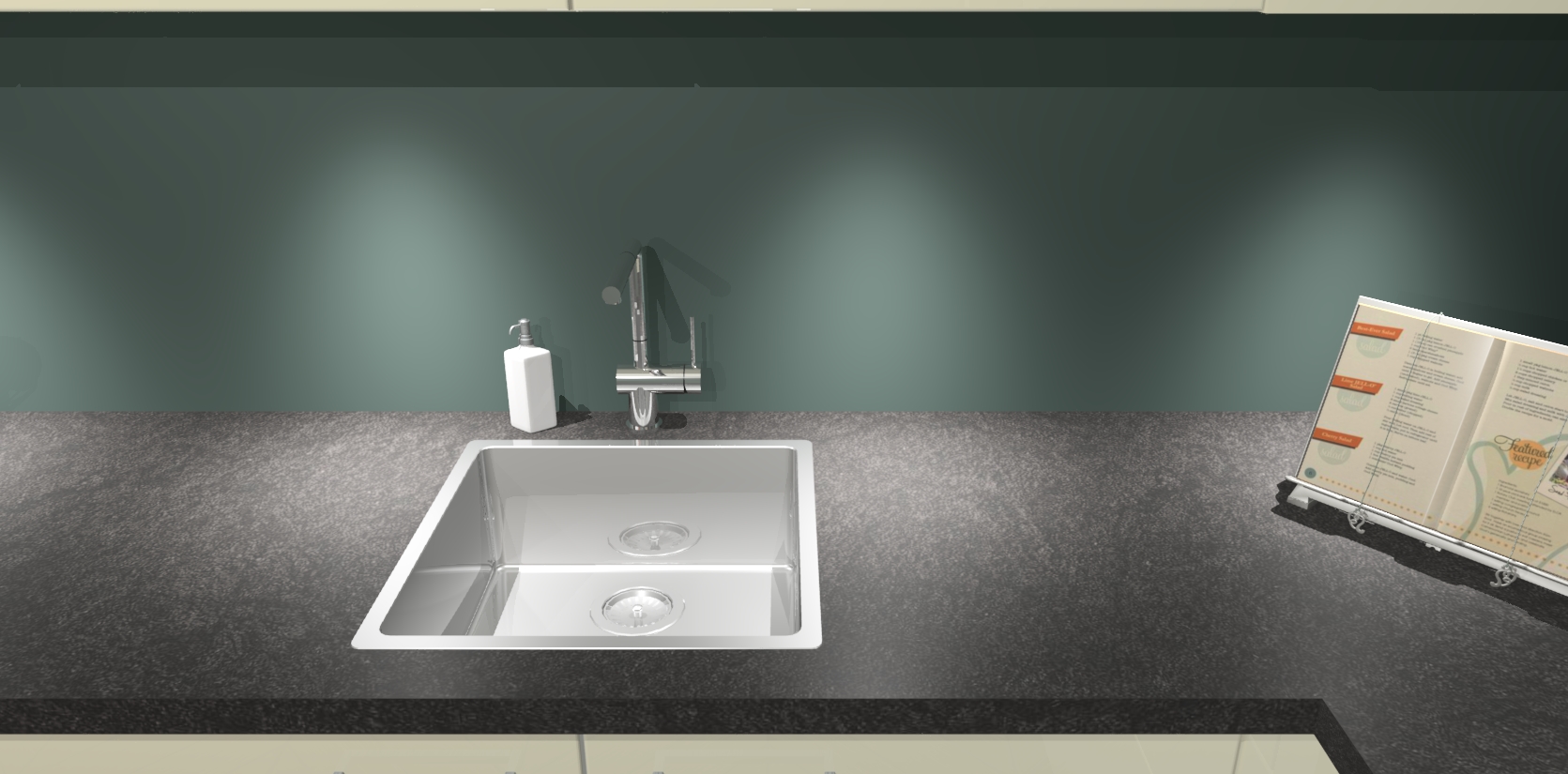 • De spoelbak is nog niet in gevreesd, dit dient tijdens het werk gedaan te worden