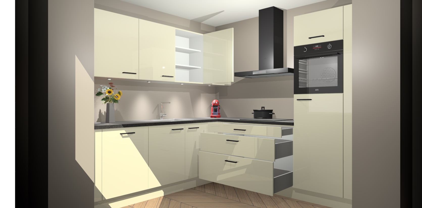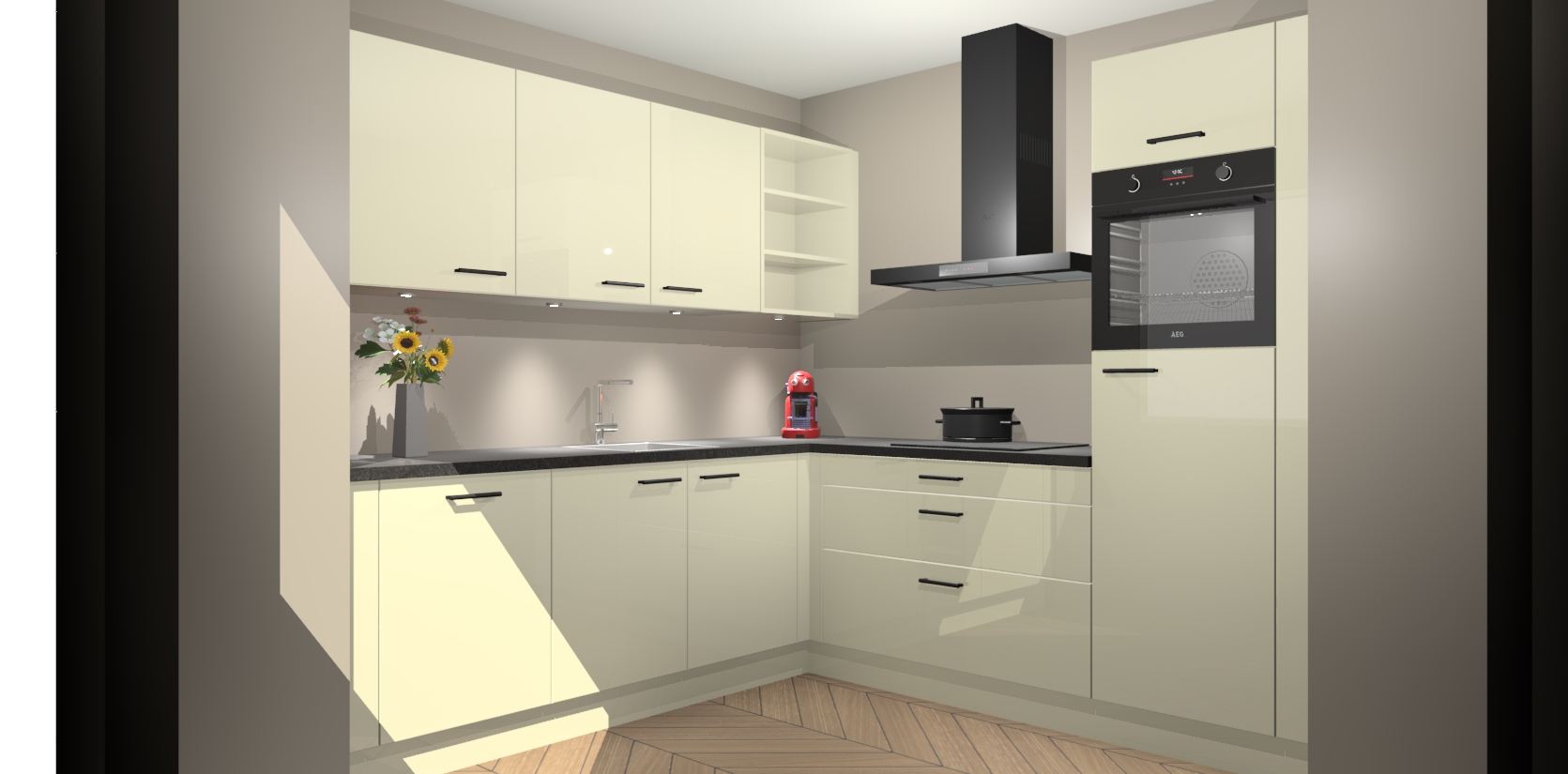 Met een modern, tijdloos design en ruime opslagruimte, zult u zich in no-time thuis voelen in uw nieuwe keuken. Uw leven wordt eenvoudiger met de soft-close deuren die voor het ultieme stille comfort zorgen - geen geluid dat u stoort terwijl u kookt. Ook is de keuken voorzien van 5 ingebouwde apparaten: een oven, inductie kookplaat, afzuigkap, vaatwasser en koelkast. Deze kunnen gemakkelijk na bestelling worden bijgewerkt naar AEG - waardoor uw luxe ervaring compleet is.