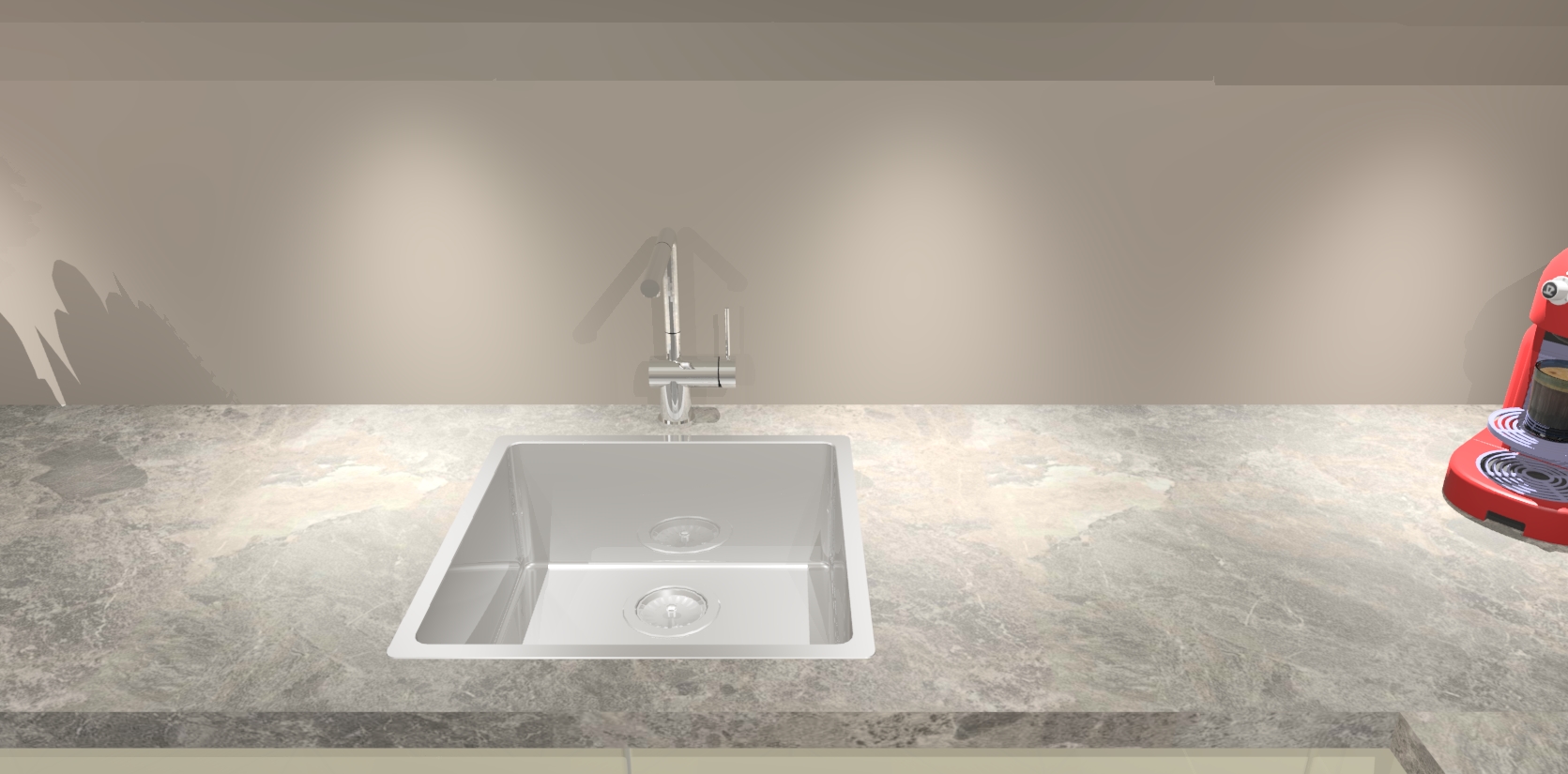 - De spoelbak is nog niet in gevreesd, dit dient tijdens het werk gedaan te worden