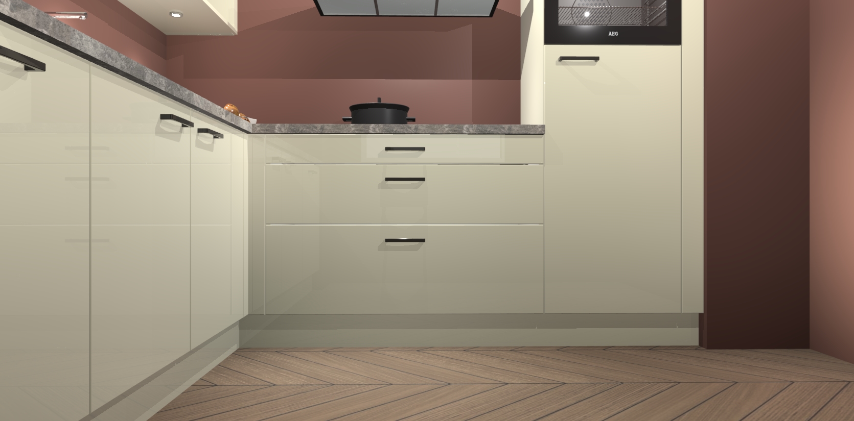 Met een modern, tijdloos design en ruime opslagruimte, zult u zich in no-time thuis voelen in uw nieuwe keuken. Uw leven wordt eenvoudiger met de soft-close deuren die voor het ultieme stille comfort zorgen - geen geluid dat u stoort terwijl u kookt. Ook is de keuken voorzien van 5 ingebouwde apparaten: een oven, inductie kookplaat, afzuigkap, vaatwasser en koelkast. Deze kunnen gemakkelijk na bestelling worden bijgewerkt naar AEG - waardoor uw luxe ervaring compleet is.