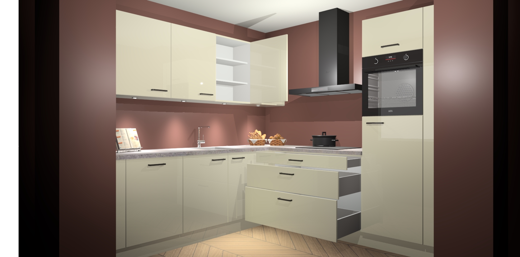 Met een modern, tijdloos design en ruime opslagruimte, zult u zich in no-time thuis voelen in uw nieuwe keuken. Uw leven wordt eenvoudiger met de soft-close deuren die voor het ultieme stille comfort zorgen - geen geluid dat u stoort terwijl u kookt. Ook is de keuken voorzien van 5 ingebouwde apparaten: een oven, inductie kookplaat, afzuigkap, vaatwasser en koelkast. Deze kunnen gemakkelijk na bestelling worden bijgewerkt naar AEG - waardoor uw luxe ervaring compleet is.