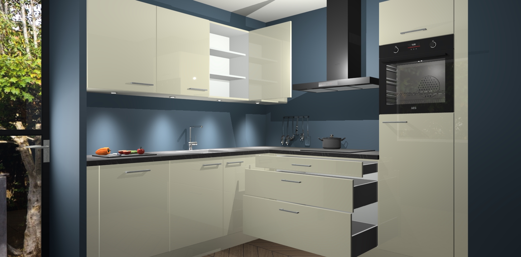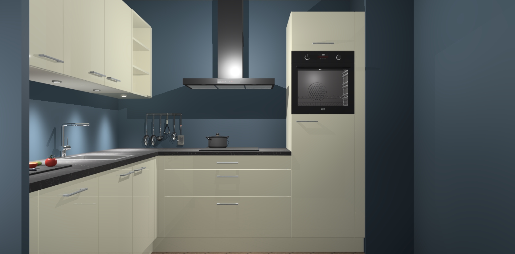 Met een modern, tijdloos design en ruime opslagruimte, zult u zich in no-time thuis voelen in uw nieuwe keuken. Uw leven wordt eenvoudiger met de soft-close deuren die voor het ultieme stille comfort zorgen - geen geluid dat u stoort terwijl u kookt. Ook is de keuken voorzien van 5 ingebouwde apparaten: een oven, inductie kookplaat, afzuigkap, vaatwasser en koelkast. Deze kunnen gemakkelijk na bestelling worden bijgewerkt naar AEG - waardoor uw luxe ervaring compleet is.