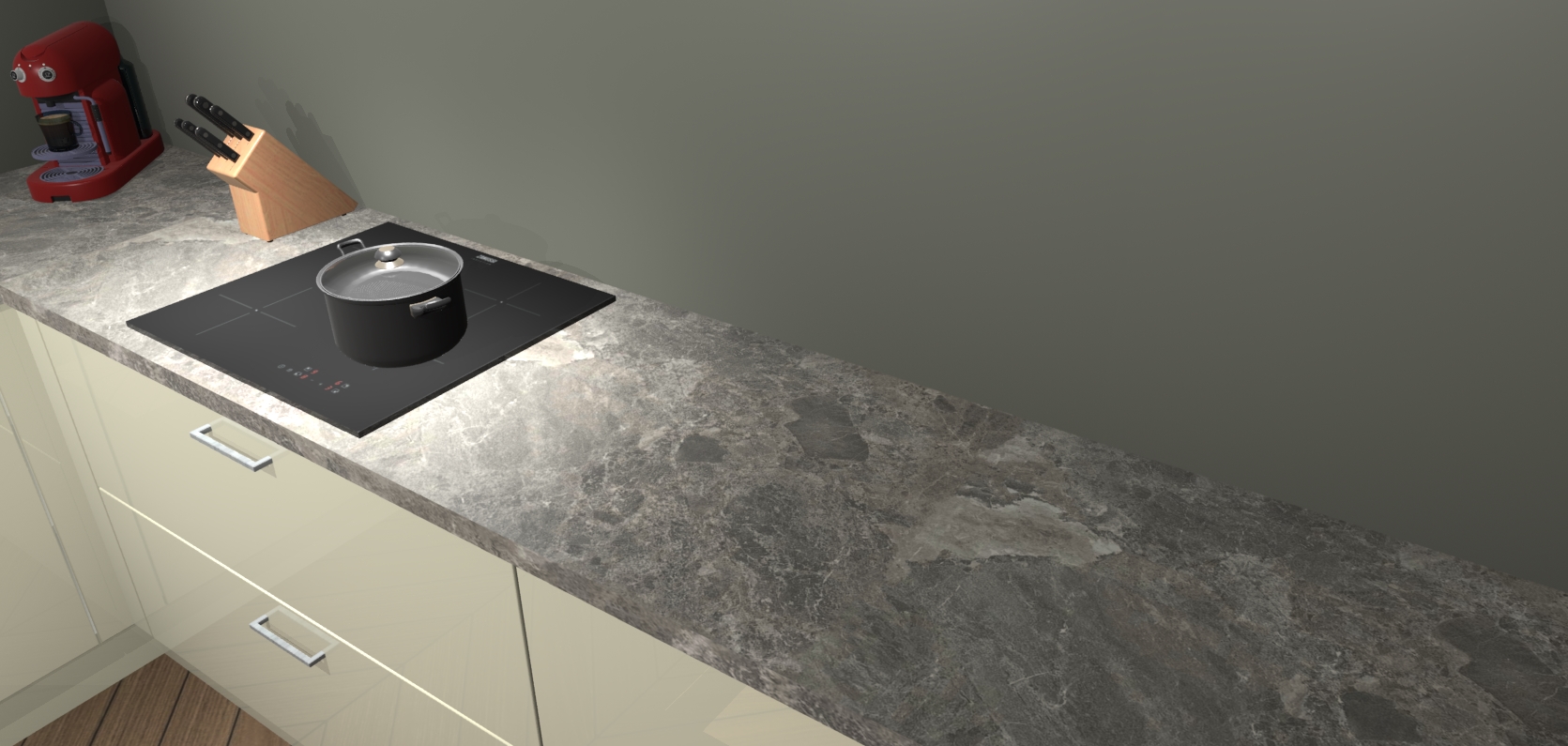 In deze box zijn alle kleuren verzameld van de deuren en werkbladen. Vraag de gratis kleurenbox aan en kijk thuis rustig verder!