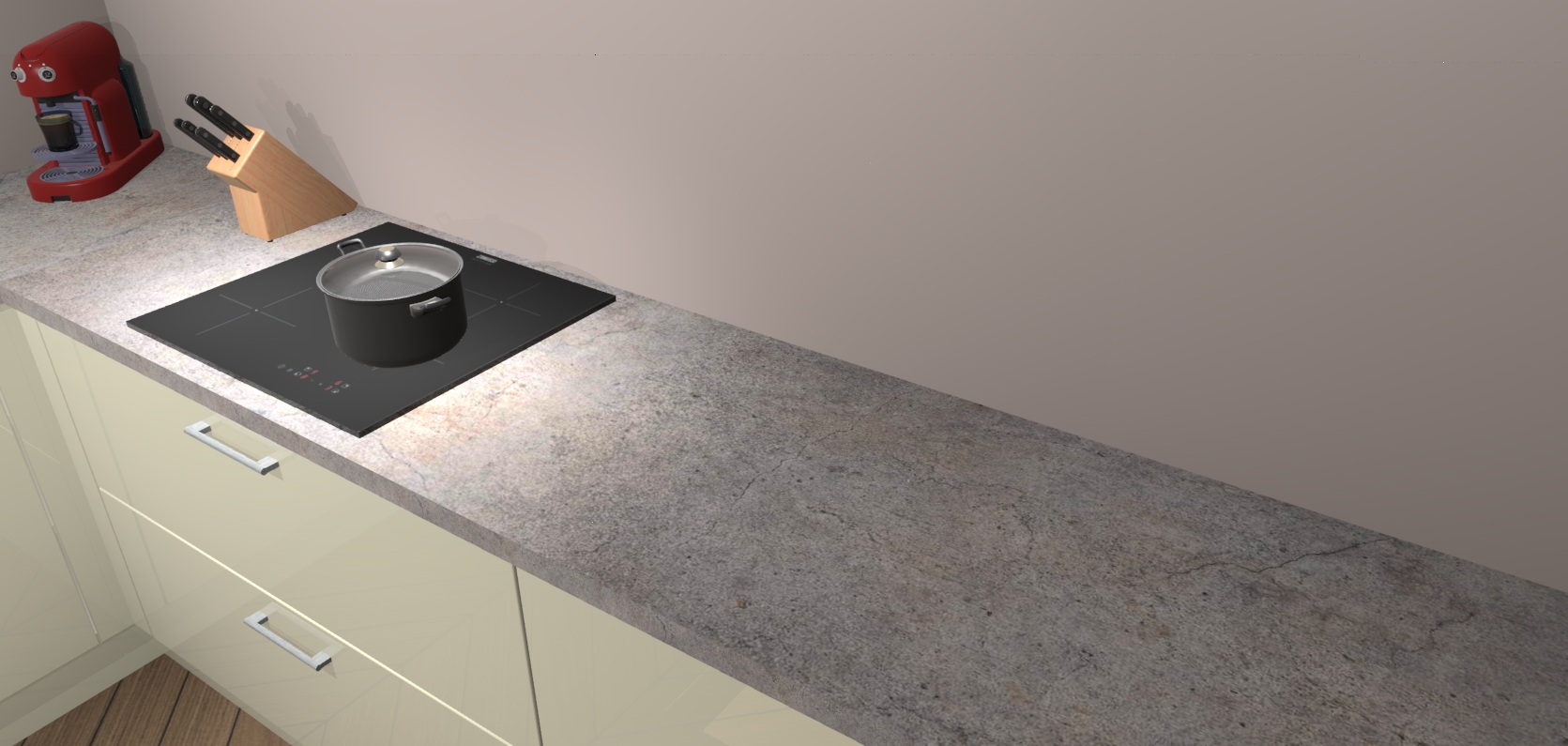 In deze box zijn alle kleuren verzameld van de deuren en werkbladen. Vraag de gratis kleurenbox aan en kijk thuis rustig verder!