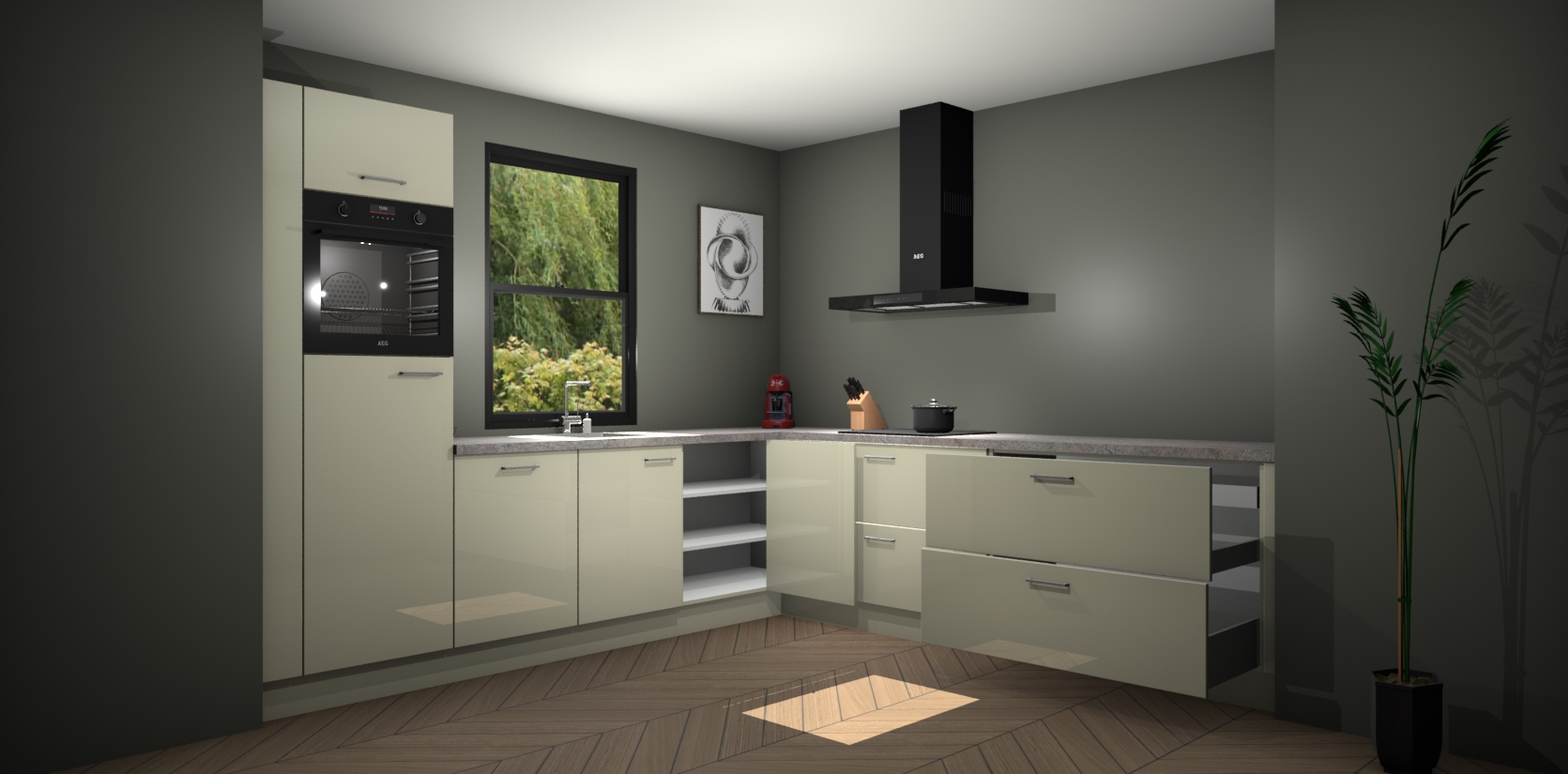 Inclusief plinten, stelpoten en werkblad