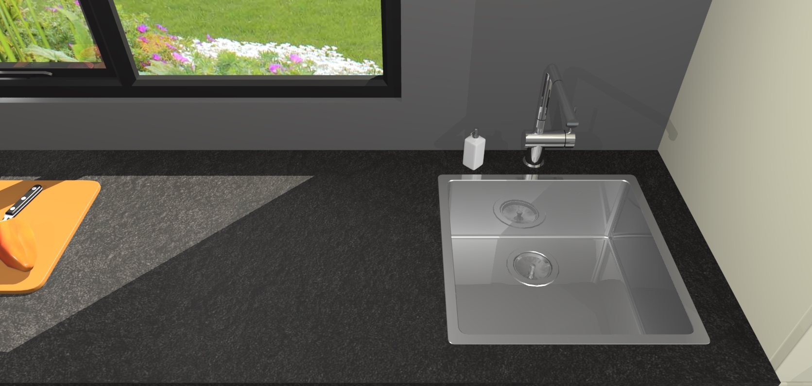 - De spoelbak is nog niet in gevreesd. Dit dient tijdens het werk gedaan te worden