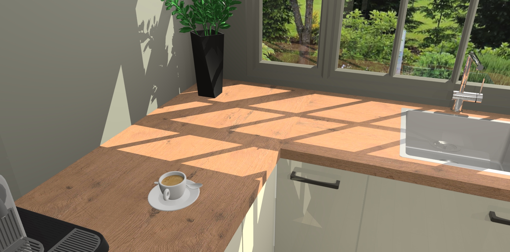 - Bij een hoekwerkblad zijn de hoeken in gevreesd en op maat gemaakt