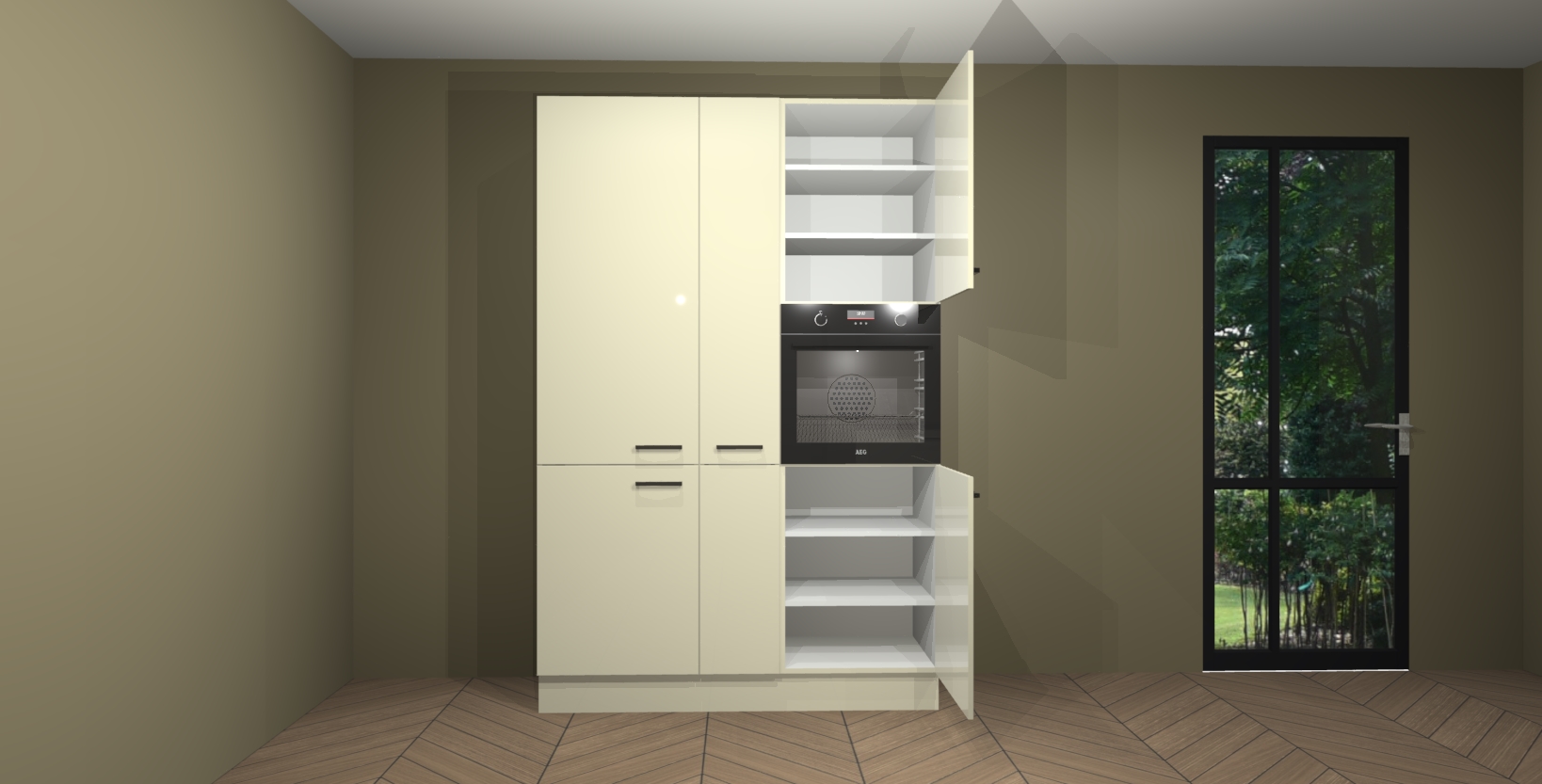 Met een modern, tijdloos design en ruime opslagruimte, zult u zich in no-time thuis voelen in uw nieuwe keuken. Uw leven wordt eenvoudiger met de soft-close deuren die voor het ultieme stille comfort zorgen - geen geluid dat u stoort terwijl u kookt. Ook is de keuken voorzien van 5 ingebouwde apparaten: een oven, inductie kookplaat, afzuigkap, vaatwasser en koelkast. Deze kunnen gemakkelijk na bestelling worden bijgewerkt naar AEG - waardoor uw luxe ervaring compleet is.