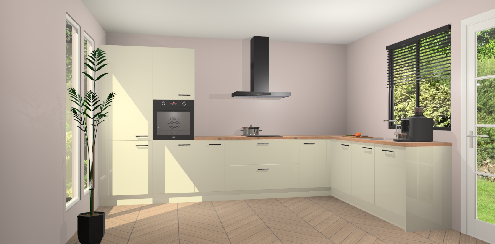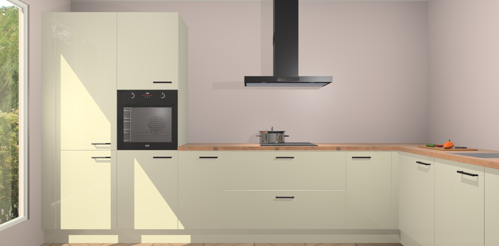Met een modern, tijdloos design en ruime opslagruimte, zult u zich in no-time thuis voelen in uw nieuwe keuken. Uw leven wordt eenvoudiger met de soft-close deuren die voor het ultieme stille comfort zorgen - geen geluid dat u stoort terwijl u kookt. Ook is de keuken voorzien van 5 ingebouwde apparaten: een oven, inductie kookplaat, afzuigkap, vaatwasser en koelkast. Deze kunnen gemakkelijk na bestelling worden bijgewerkt naar AEG - waardoor uw luxe ervaring compleet is.