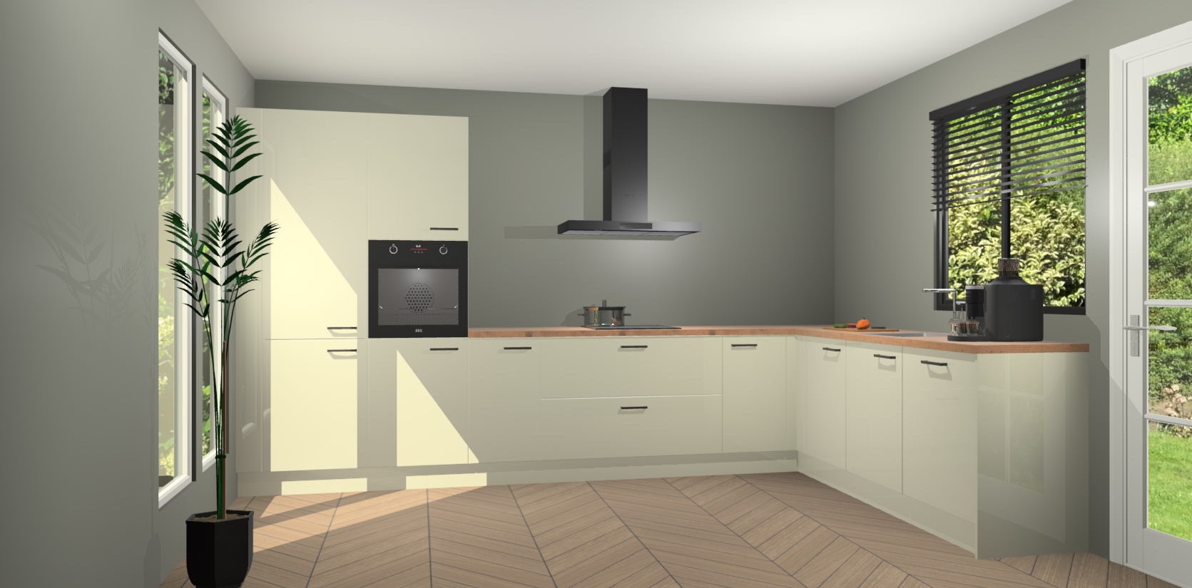 Met een modern, tijdloos design en ruime opslagruimte, zult u zich in no-time thuis voelen in uw nieuwe keuken. Uw leven wordt eenvoudiger met de soft-close deuren die voor het ultieme stille comfort zorgen - geen geluid dat u stoort terwijl u kookt. Ook is de keuken voorzien van 5 ingebouwde apparaten: een oven, inductie kookplaat, afzuigkap, vaatwasser en koelkast. Deze kunnen gemakkelijk na bestelling worden bijgewerkt naar AEG - waardoor uw luxe ervaring compleet is.