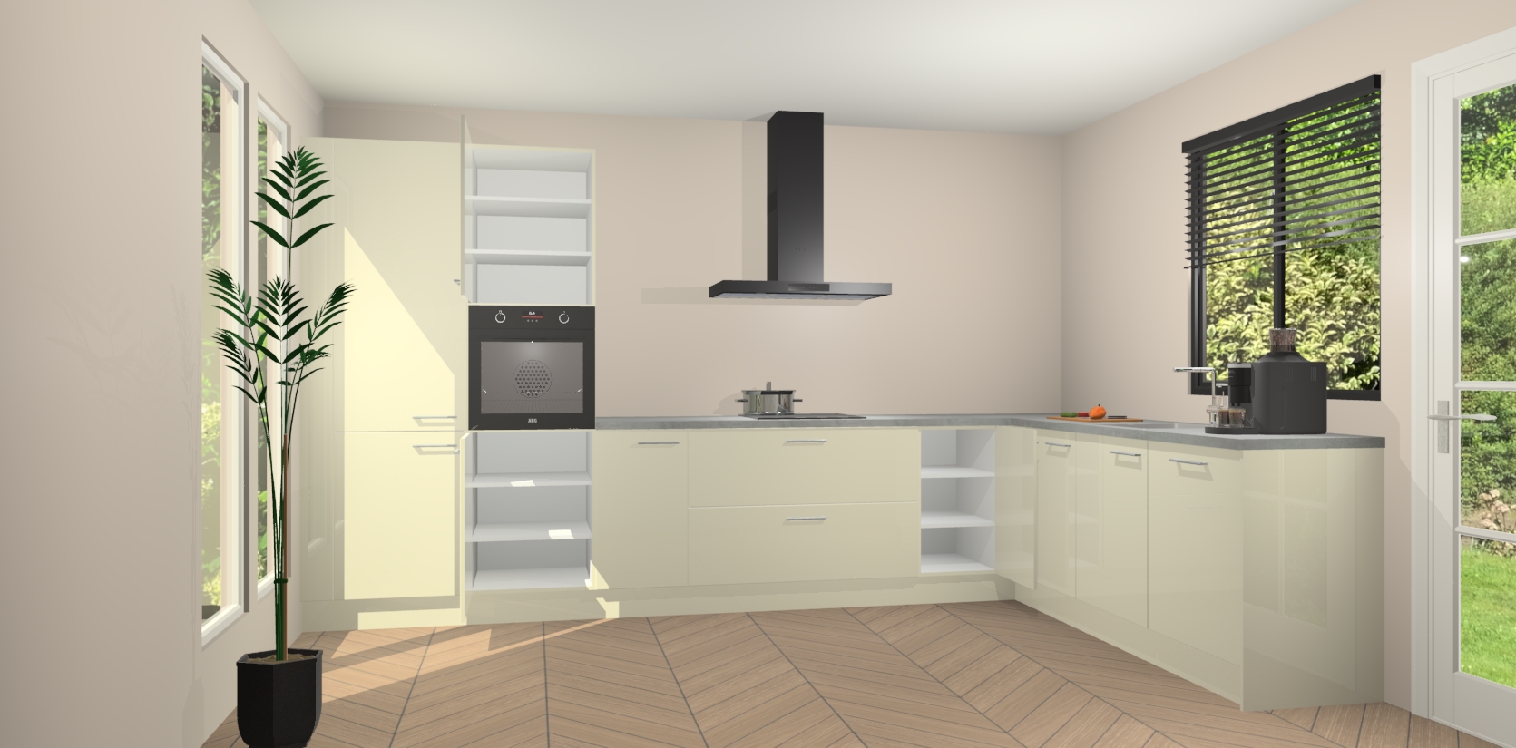 Met een modern, tijdloos design en ruime opslagruimte, zult u zich in no-time thuis voelen in uw nieuwe keuken. Uw leven wordt eenvoudiger met de soft-close deuren die voor het ultieme stille comfort zorgen - geen geluid dat u stoort terwijl u kookt. Ook is de keuken voorzien van 5 ingebouwde apparaten: een oven, inductie kookplaat, afzuigkap, vaatwasser en koelkast. Deze kunnen gemakkelijk na bestelling worden bijgewerkt naar AEG - waardoor uw luxe ervaring compleet is.