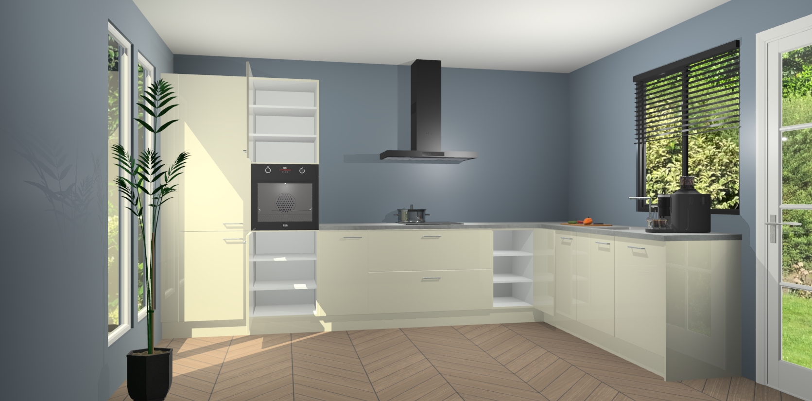 Met een modern, tijdloos design en ruime opslagruimte, zult u zich in no-time thuis voelen in uw nieuwe keuken. Uw leven wordt eenvoudiger met de soft-close deuren die voor het ultieme stille comfort zorgen - geen geluid dat u stoort terwijl u kookt. Ook is de keuken voorzien van 5 ingebouwde apparaten: een oven, inductie kookplaat, afzuigkap, vaatwasser en koelkast. Deze kunnen gemakkelijk na bestelling worden bijgewerkt naar AEG - waardoor uw luxe ervaring compleet is.