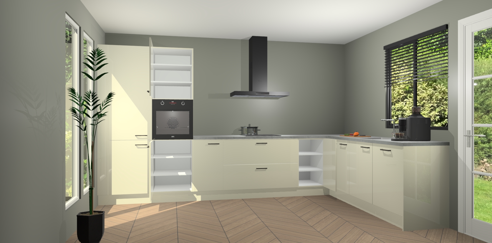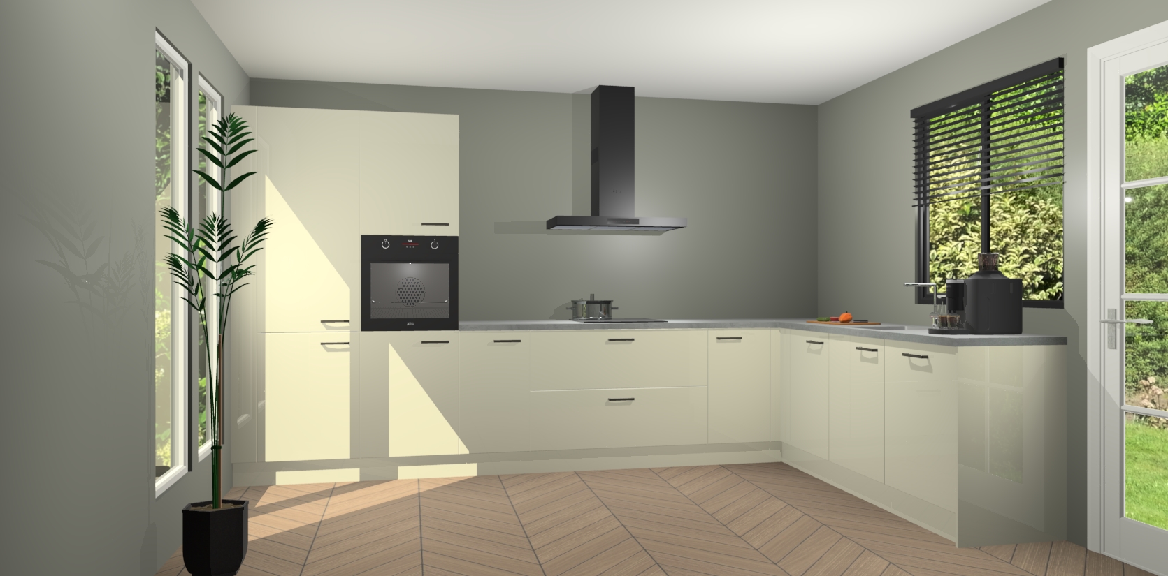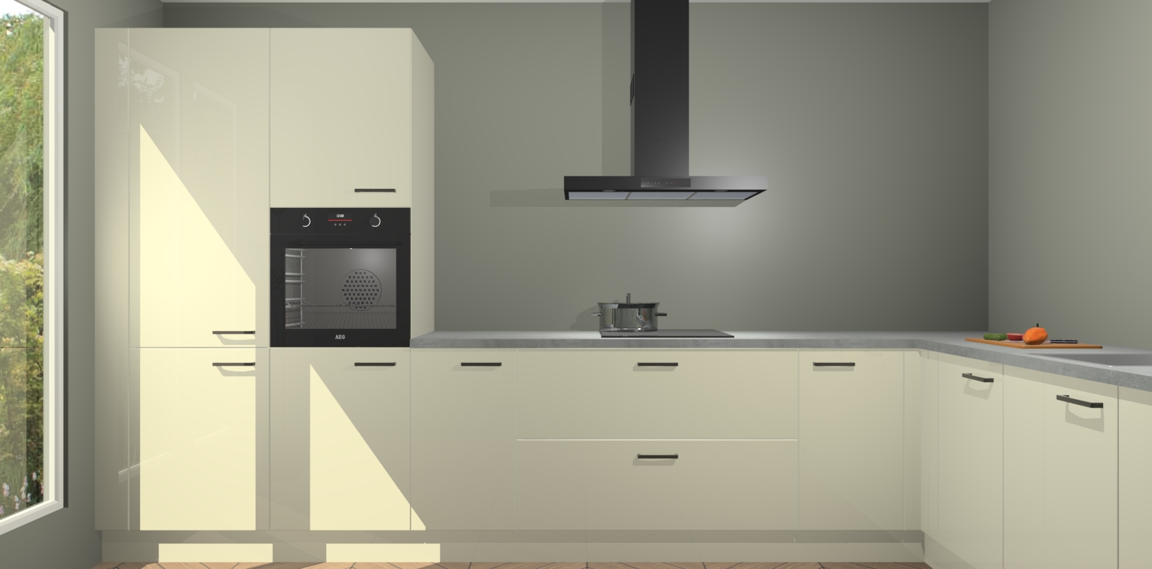 Met een modern, tijdloos design en ruime opslagruimte, zult u zich in no-time thuis voelen in uw nieuwe keuken. Uw leven wordt eenvoudiger met de soft-close deuren die voor het ultieme stille comfort zorgen - geen geluid dat u stoort terwijl u kookt. Ook is de keuken voorzien van 5 ingebouwde apparaten: een oven, inductie kookplaat, afzuigkap, vaatwasser en koelkast. Deze kunnen gemakkelijk na bestelling worden bijgewerkt naar AEG - waardoor uw luxe ervaring compleet is.
