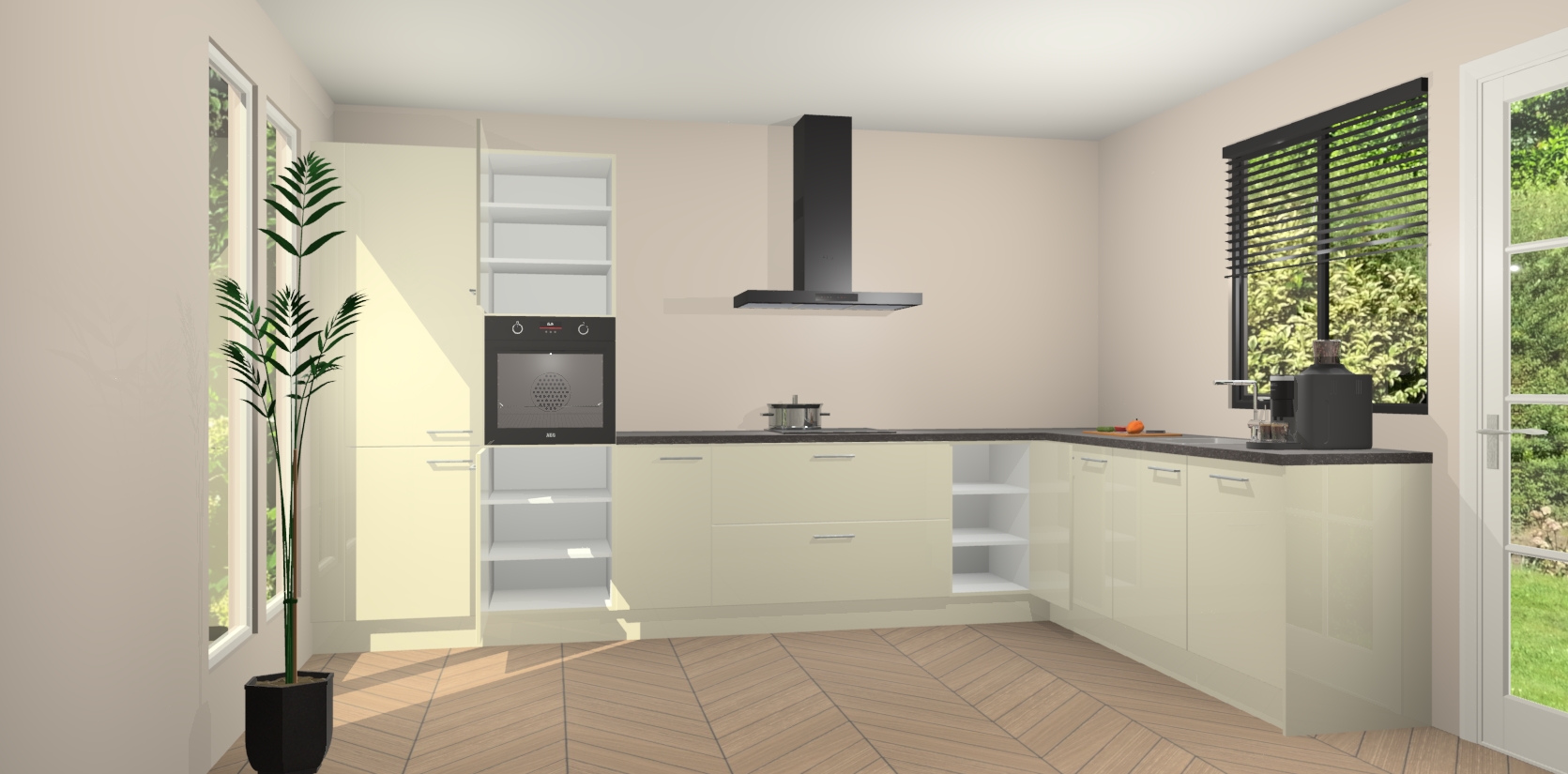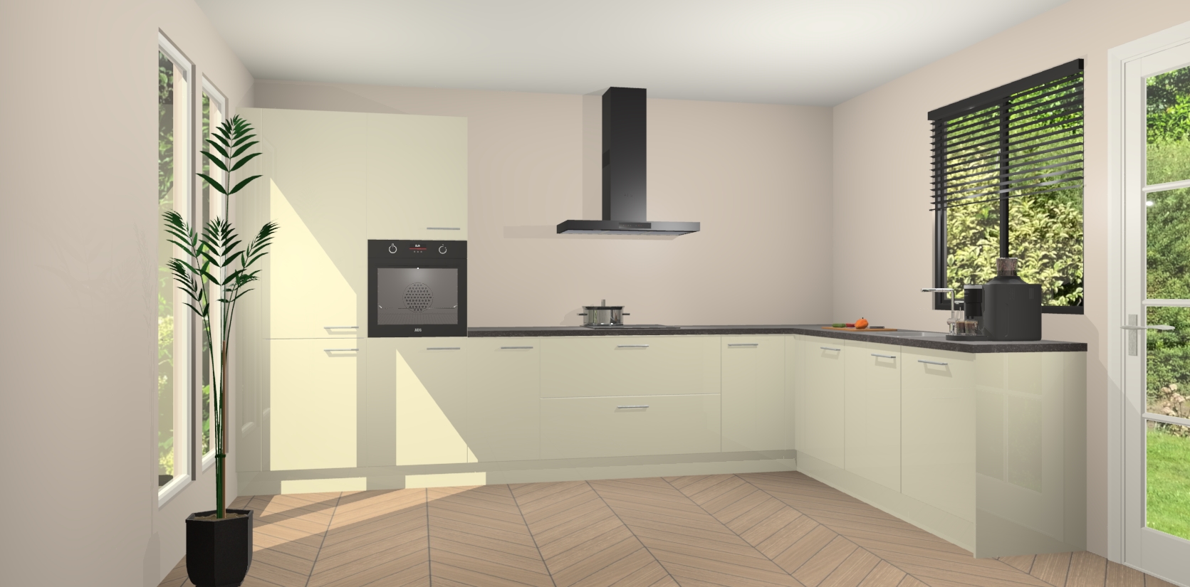 Met een modern, tijdloos design en ruime opslagruimte, zult u zich in no-time thuis voelen in uw nieuwe keuken. Uw leven wordt eenvoudiger met de soft-close deuren die voor het ultieme stille comfort zorgen - geen geluid dat u stoort terwijl u kookt. Ook is de keuken voorzien van 5 ingebouwde apparaten: een oven, inductie kookplaat, afzuigkap, vaatwasser en koelkast. Deze kunnen gemakkelijk na bestelling worden bijgewerkt naar AEG - waardoor uw luxe ervaring compleet is.