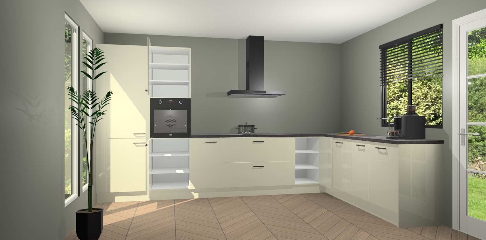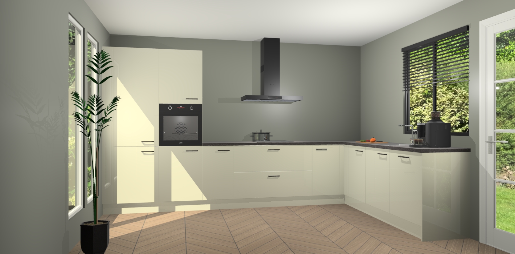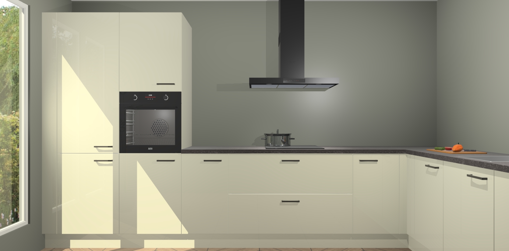 Met een modern, tijdloos design en ruime opslagruimte, zult u zich in no-time thuis voelen in uw nieuwe keuken. Uw leven wordt eenvoudiger met de soft-close deuren die voor het ultieme stille comfort zorgen - geen geluid dat u stoort terwijl u kookt. Ook is de keuken voorzien van 5 ingebouwde apparaten: een oven, inductie kookplaat, afzuigkap, vaatwasser en koelkast. Deze kunnen gemakkelijk na bestelling worden bijgewerkt naar AEG - waardoor uw luxe ervaring compleet is.