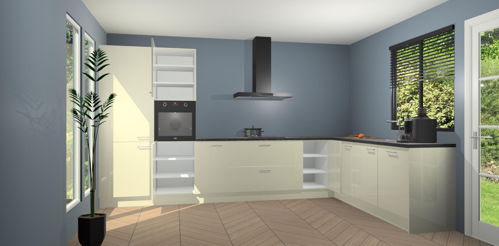 Met een modern, tijdloos design en ruime opslagruimte, zult u zich in no-time thuis voelen in uw nieuwe keuken. Uw leven wordt eenvoudiger met de soft-close deuren die voor het ultieme stille comfort zorgen - geen geluid dat u stoort terwijl u kookt. Ook is de keuken voorzien van 5 ingebouwde apparaten: een oven, inductie kookplaat, afzuigkap, vaatwasser en koelkast. Deze kunnen gemakkelijk na bestelling worden bijgewerkt naar AEG - waardoor uw luxe ervaring compleet is.