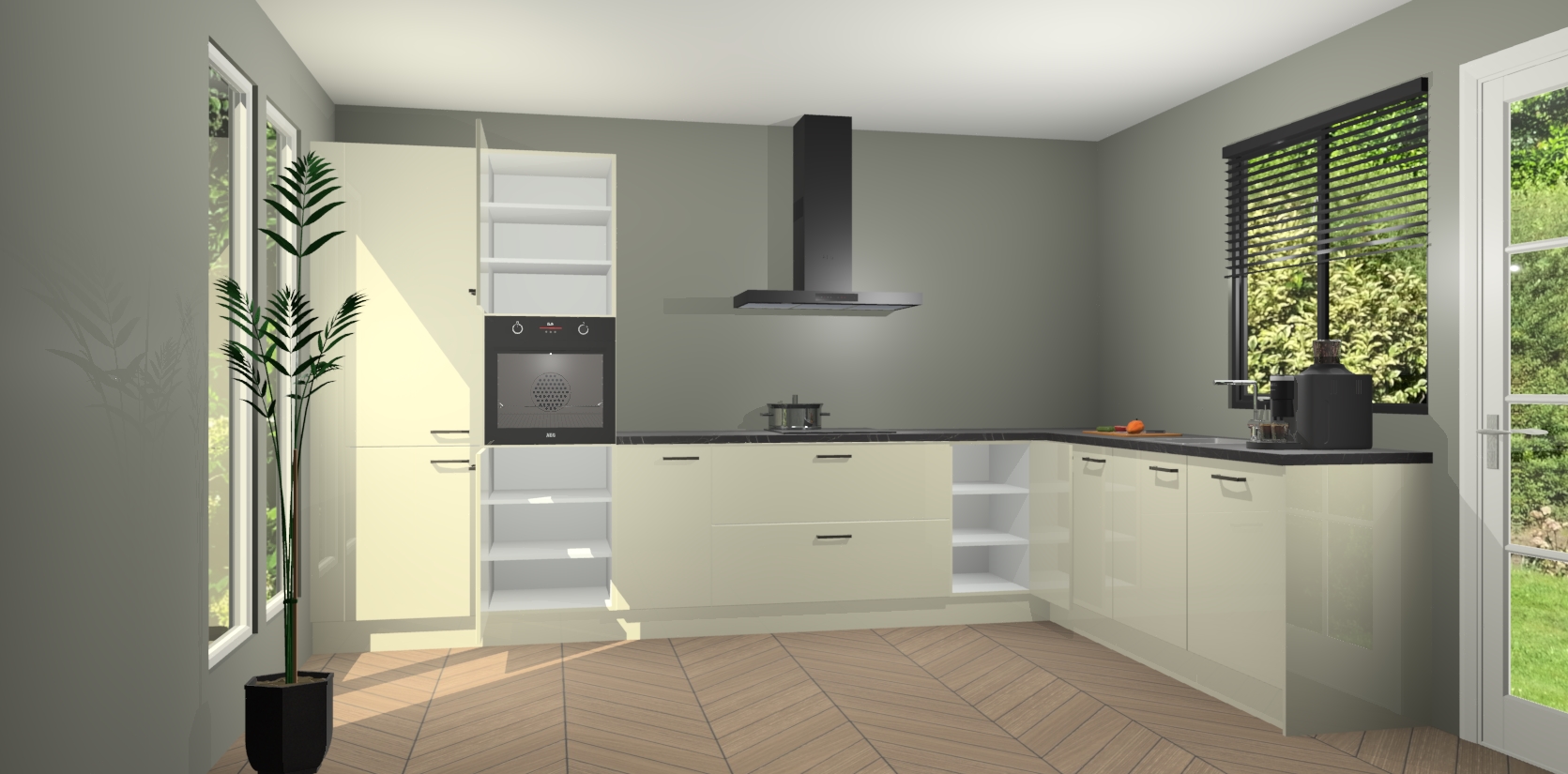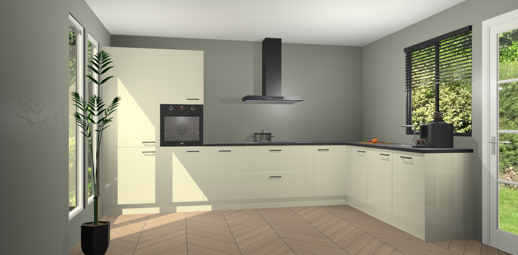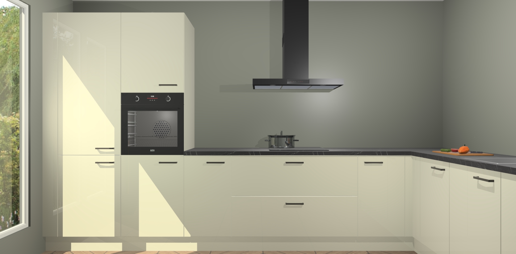 Met een modern, tijdloos design en ruime opslagruimte, zult u zich in no-time thuis voelen in uw nieuwe keuken. Uw leven wordt eenvoudiger met de soft-close deuren die voor het ultieme stille comfort zorgen - geen geluid dat u stoort terwijl u kookt. Ook is de keuken voorzien van 5 ingebouwde apparaten: een oven, inductie kookplaat, afzuigkap, vaatwasser en koelkast. Deze kunnen gemakkelijk na bestelling worden bijgewerkt naar AEG - waardoor uw luxe ervaring compleet is.