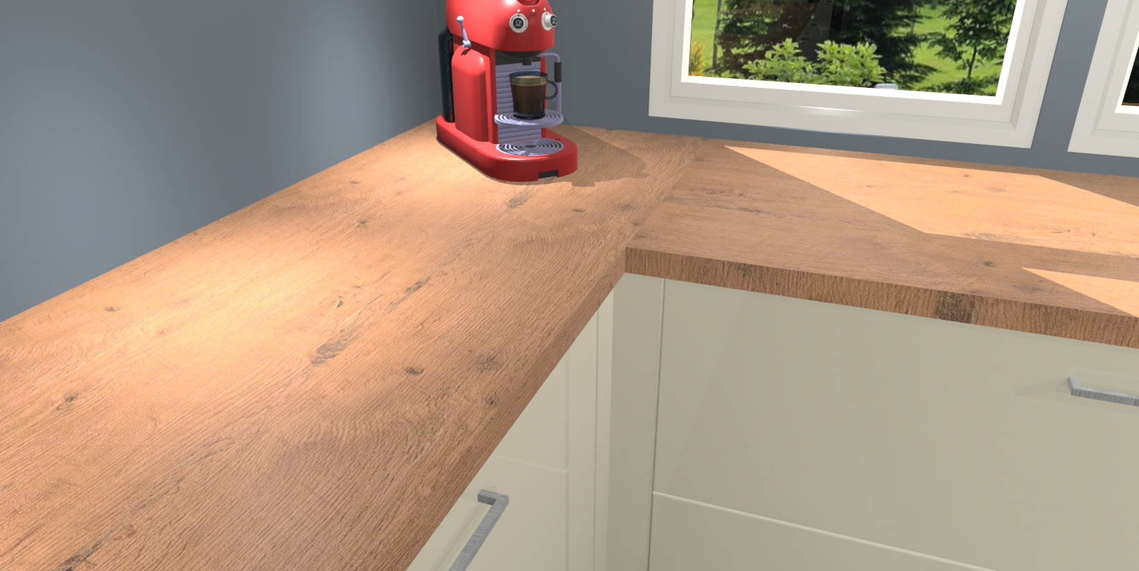 - Bij een hoekwerkblad zijn de hoeken in gevreesd en op maat gemaakt