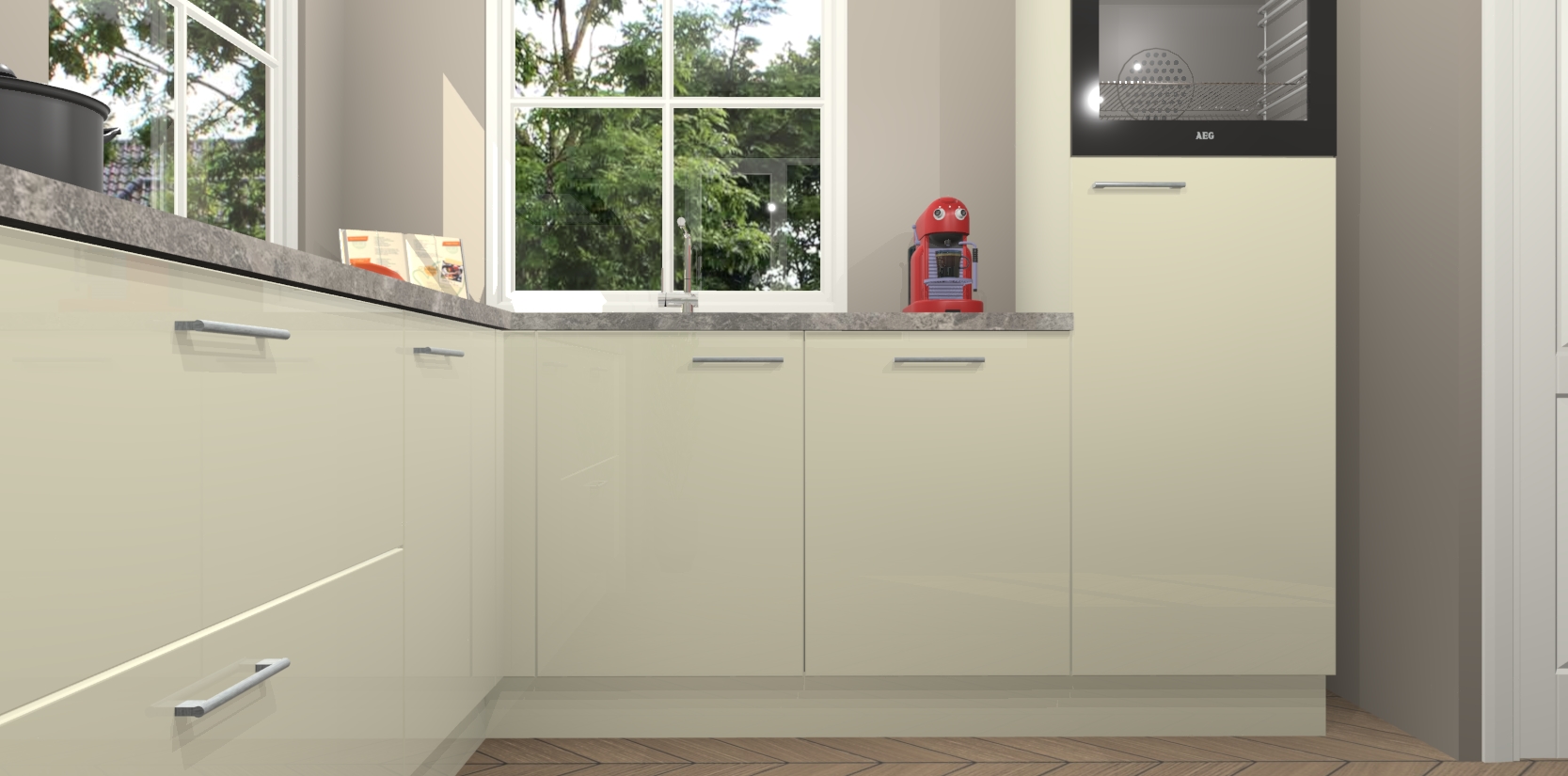 De Magnolia hoogglans keuken Pai bevat vijf essentiële inbouwapparaten - een oven, inductiekookplaat, afzuigkap, vaatwasser en koelkast - zodat u er na levering meteen in kunt. Voor de slimme kopers die weten dat apparaten vaak het verschil kunnen maken tussen functioneel en luxueus, bieden we eenvoudige upgradeopties naar AEG, van oven naar combimagnetron na bestelling of naar een kookplaat met geïntrigeerde afzuiging. En met onze vaste lage prijs en snelle levering binnen zeven weken vanaf de orderbevestiging hoeft u zich geen zorgen te maken over verborgen kosten of lange levertijden die uw droomkeuken kunnen vertragen.