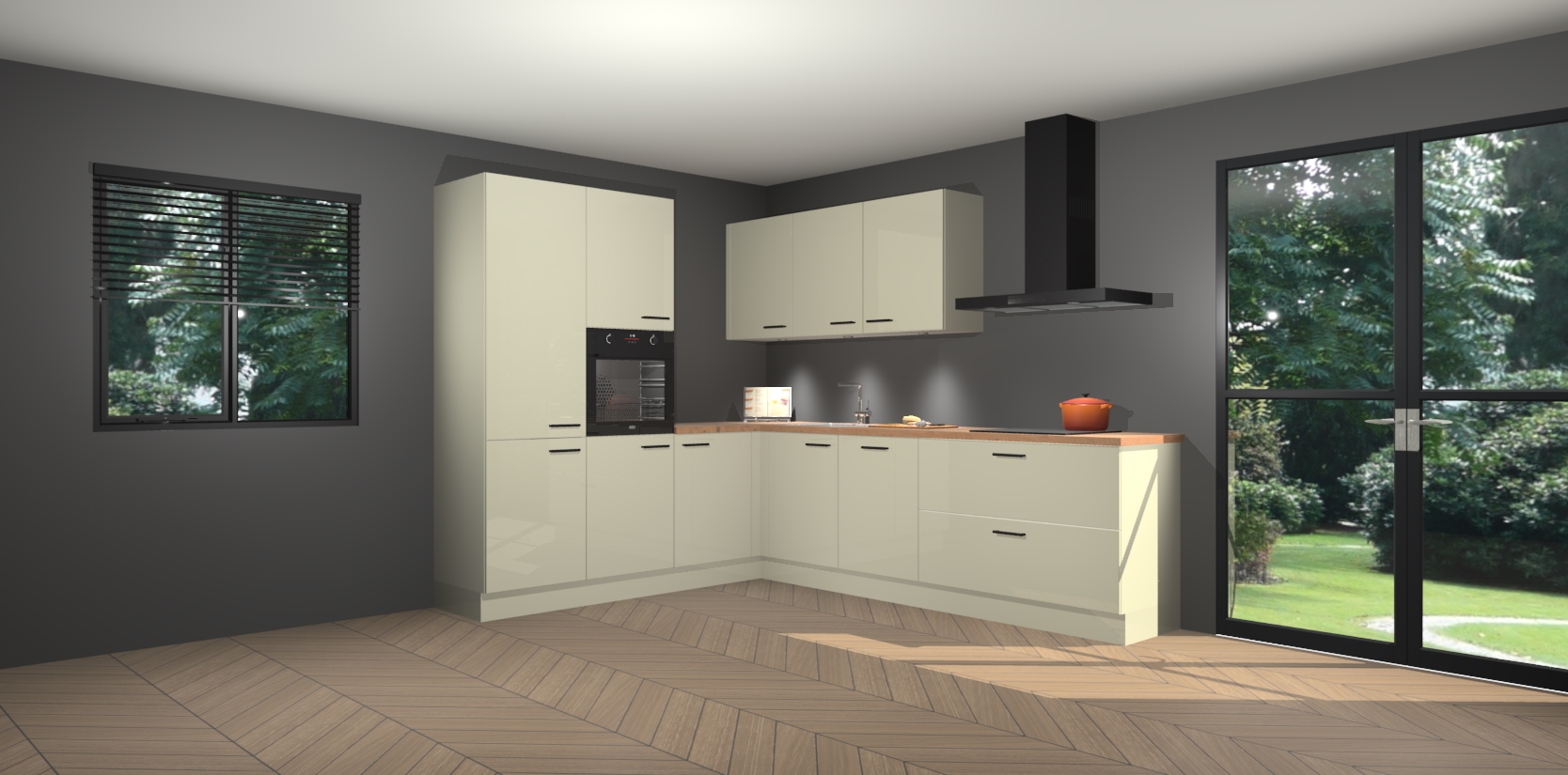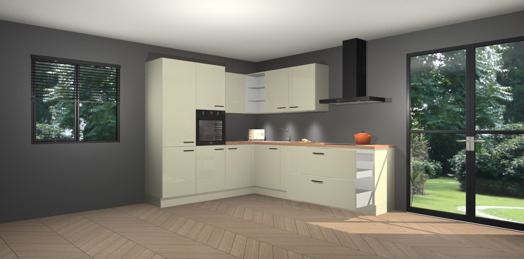 Maak kennis met de magnolia hoogglans keuken Parla - de perfecte aanvulling voor uw moderne keuken! Ervaar tijdloos design, elegantie en een chique uitstraling met onze zwarte handgrepen, soft-close deuren en veel opbergruimte. Dit alles wordt aangeboden tegen een vaste lage prijs voor ongeëvenaarde Duitse keukenkwaliteit!