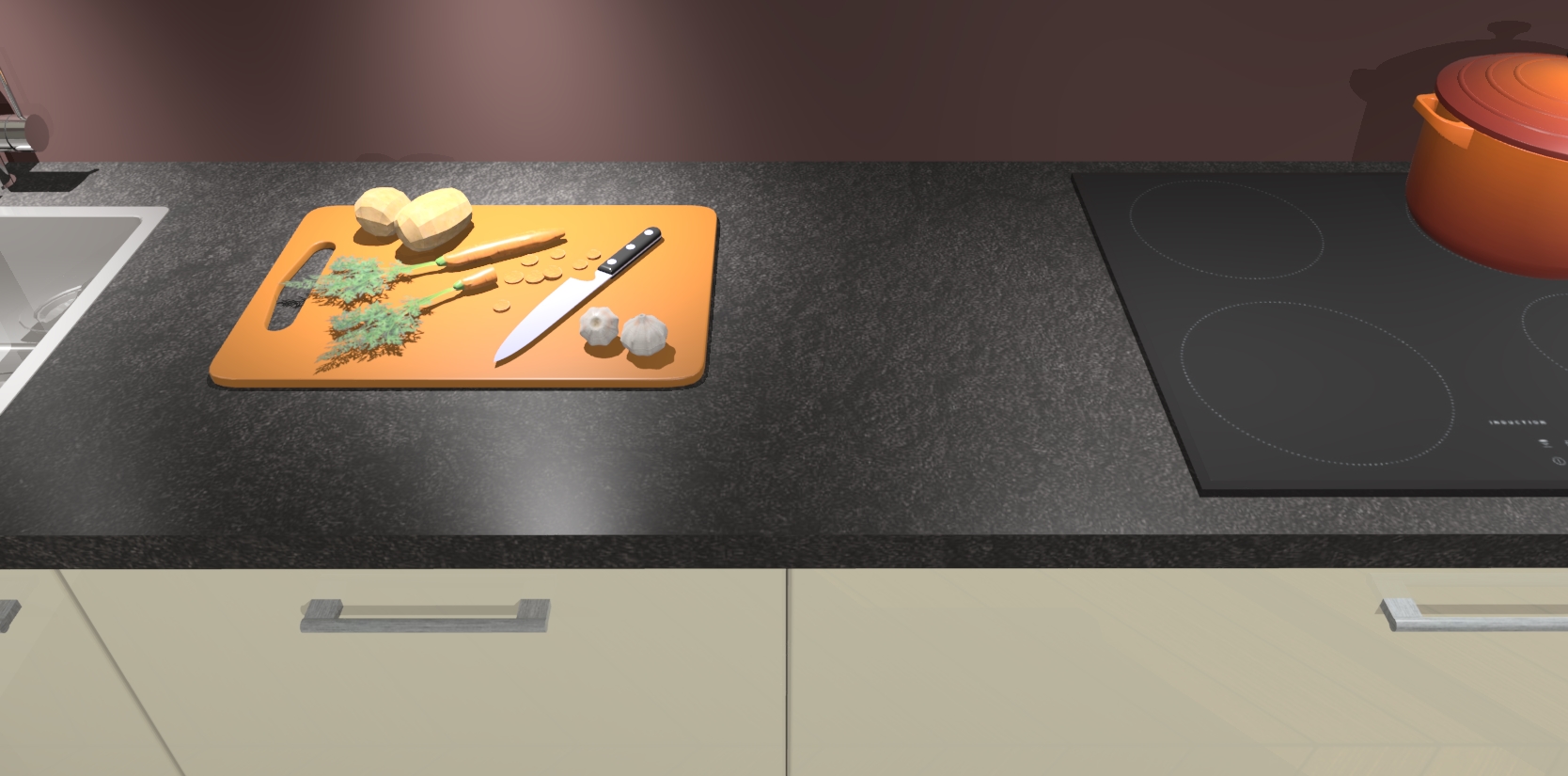 - Uitsparing van kookplaat, spoelbak en kraan dient u zelf te verzorgen.