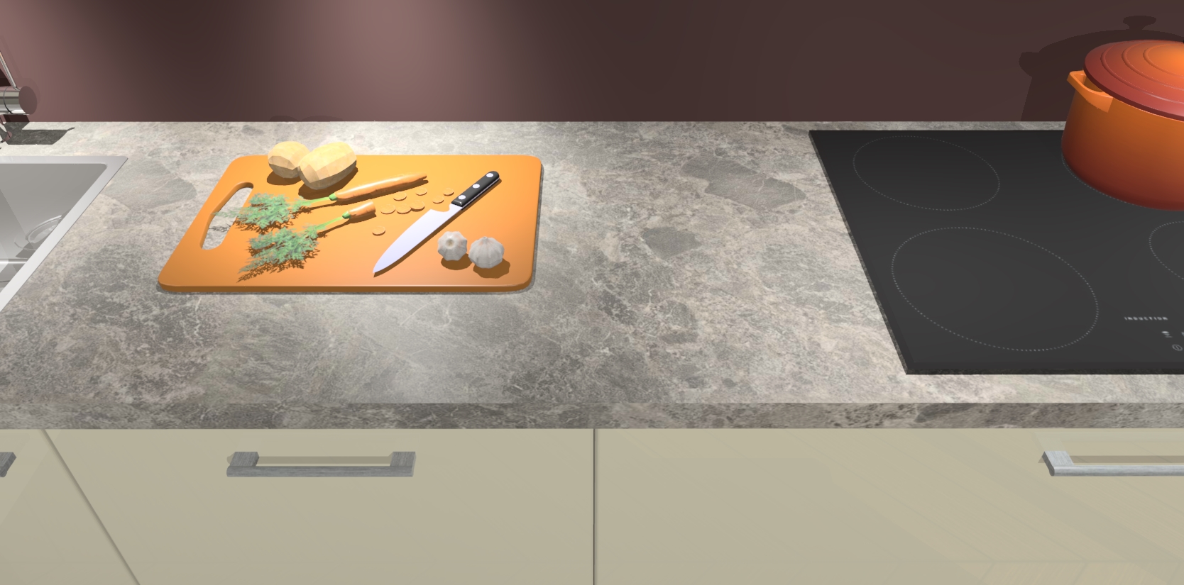 - Uitsparing van kookplaat, spoelbak en kraan dient u zelf te verzorgen.
