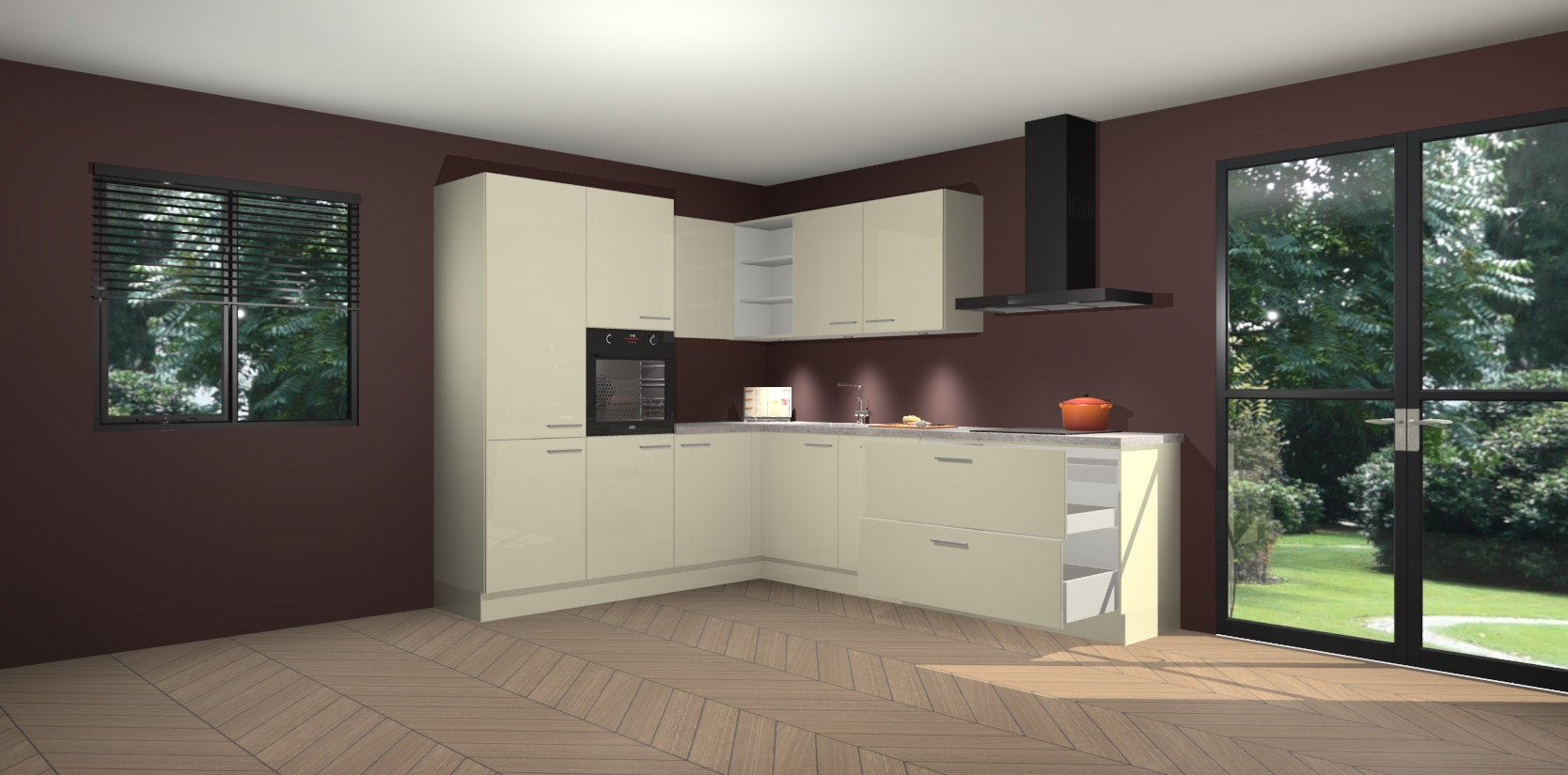 Maak kennis met de magnolia hoogglans keuken Parla - de perfecte aanvulling voor uw moderne keuken! Ervaar tijdloos design, elegantie en een chique uitstraling met onze zwarte handgrepen, soft-close deuren en veel opbergruimte. Dit alles wordt aangeboden tegen een vaste lage prijs voor ongeëvenaarde Duitse keukenkwaliteit!