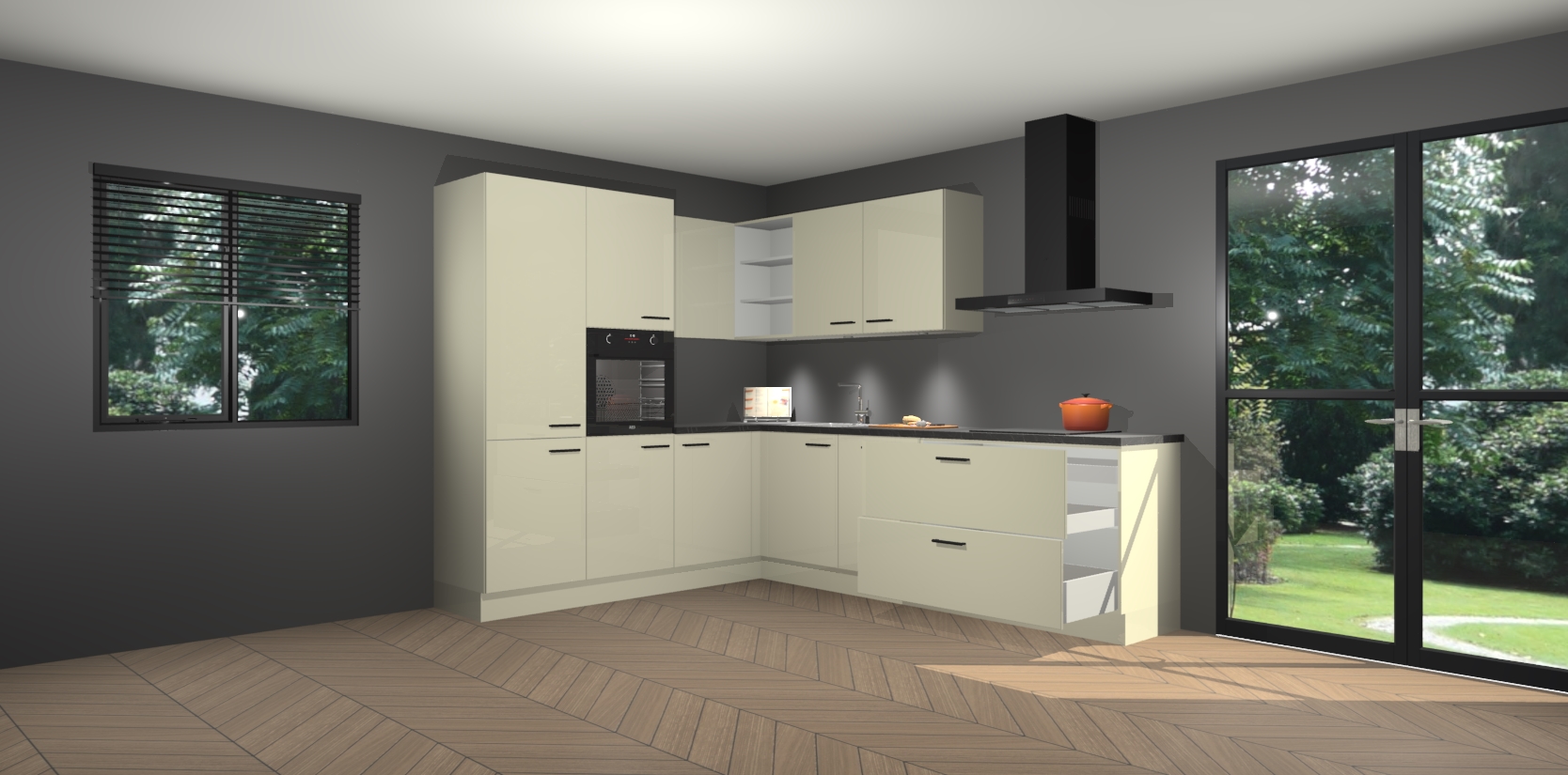 Maak kennis met de magnolia hoogglans keuken Parla - de perfecte aanvulling voor uw moderne keuken! Ervaar tijdloos design, elegantie en een chique uitstraling met onze zwarte handgrepen, soft-close deuren en veel opbergruimte. Dit alles wordt aangeboden tegen een vaste lage prijs voor ongeëvenaarde Duitse keukenkwaliteit!