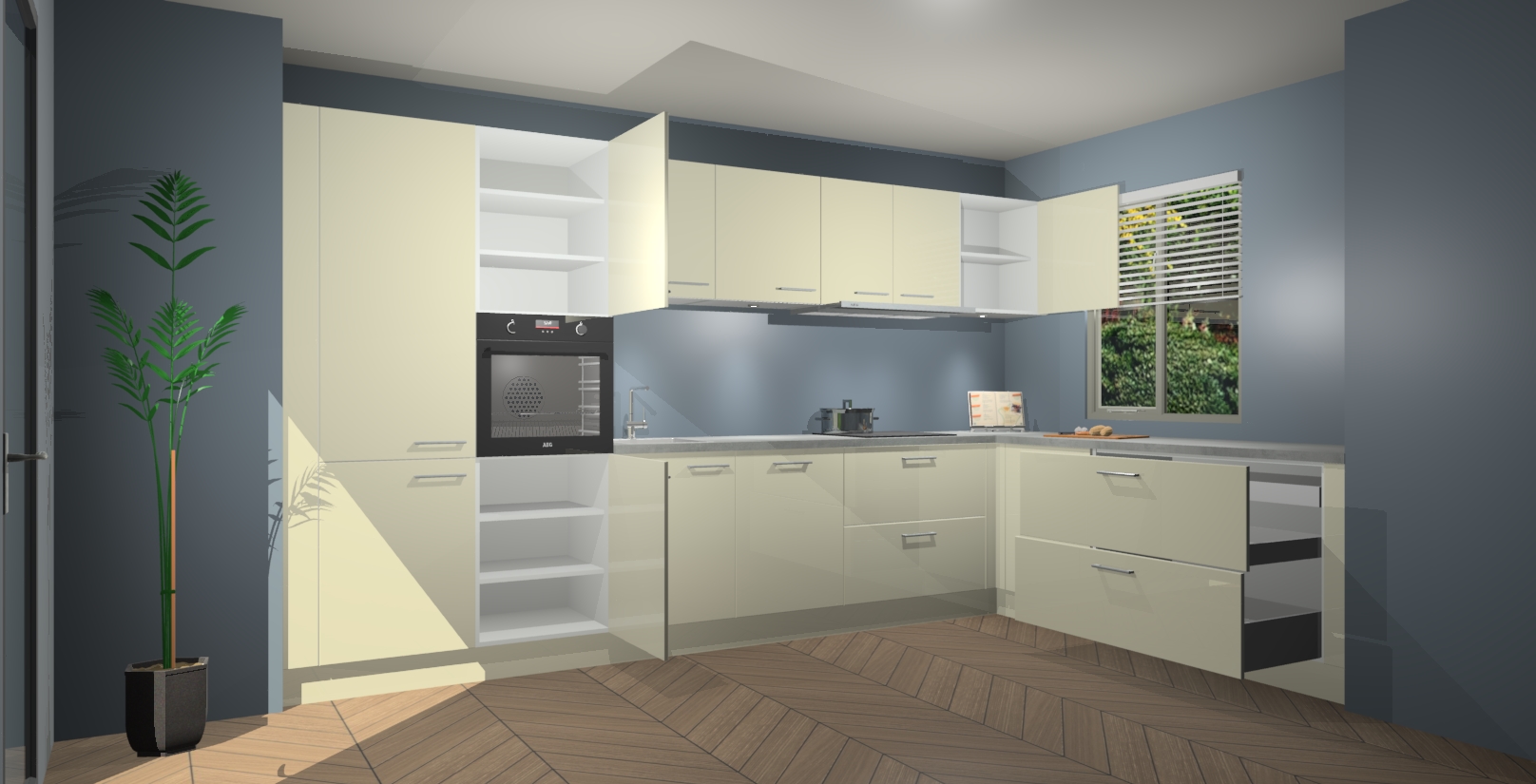 Inclusief plinten, stelpoten en werkblad