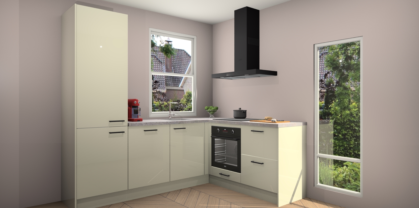 De Magnolia hoogglans keuken Phuket heeft alles wat u maar kunt wensen. Niet alleen zijn er softclose deuren, maar ook 5 ingebouwde apparaten: een oven, inductiekookplaat, afzuigkap, vaatwasser en koelkast - waarbij u later gemakkelijk naar het AEG merk, van inductiekookplaat naar kookplaat met geïntegreerde afzuiging of van oven naar combimagnetron kunt upgraden. Dat alles tegen een vast laag tarief! Bovendien geeft de Magnolia hoogglans keuken Phuket supersnelle levering van 7 weken. Echt iets voor u als u er niet op wilt wachten om het resultaat te zien in eigen keuken!