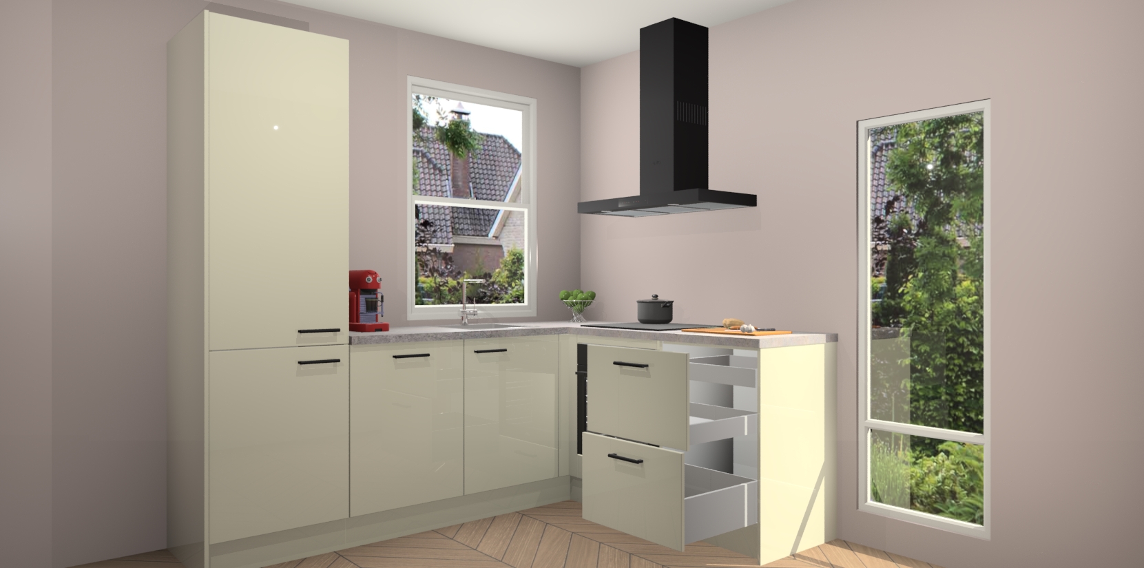 De prachtige Magnolia hoogglans keuken Phuket is de perfecte keuze als u op zoek bent naar een moderne hoekkeuken met alle luxe en comfort die u kunt verwachten! De uitstraling in het houtlook-design draagt bij aan de warme sfeer die u nu al voelt wanneer u er naar kijkt. Heeft u genoeg van ouderwetse keukens? Probeer dan direct deze moderne, mooie hoekkeukens en laat iedereen verbluft achter!