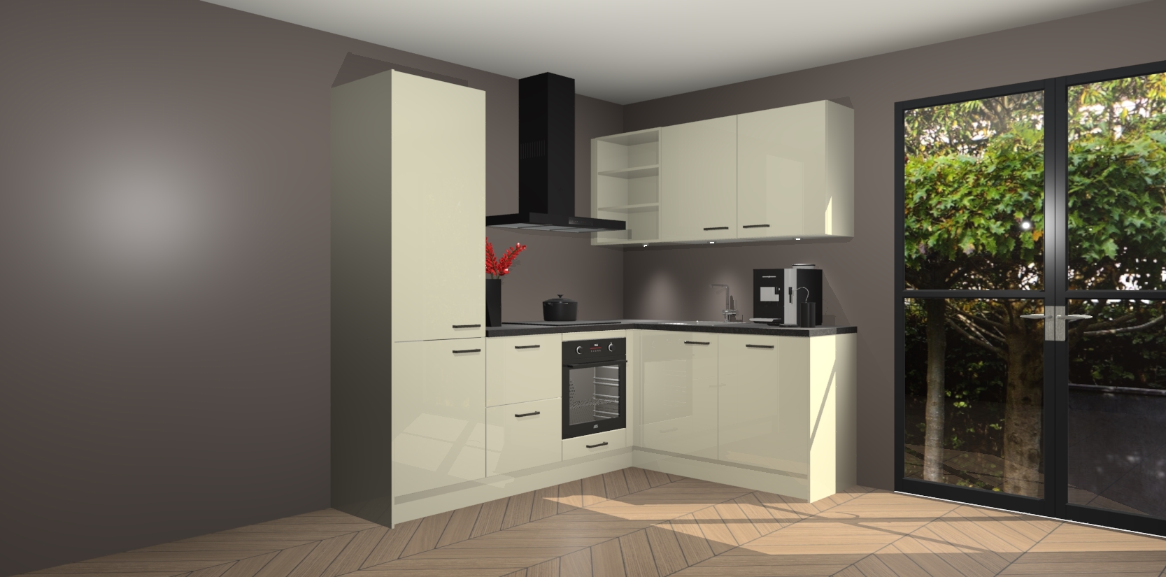 Wauw, dit is de Magnolia Hoogglans keuken Pilsen! U kunt gerust zeggen dat u elegantie combineert met functionaliteit met deze keuken. Met een modern en chique ontwerp is de keuken precies wat u nodig heeft om uw ruimte te verfraaien. De binnenzijde van de kasten is in dezelfde donkere kleur als de buitenzijde voor een uniforme look, compleet met softclose-kasten die stil sluiten.