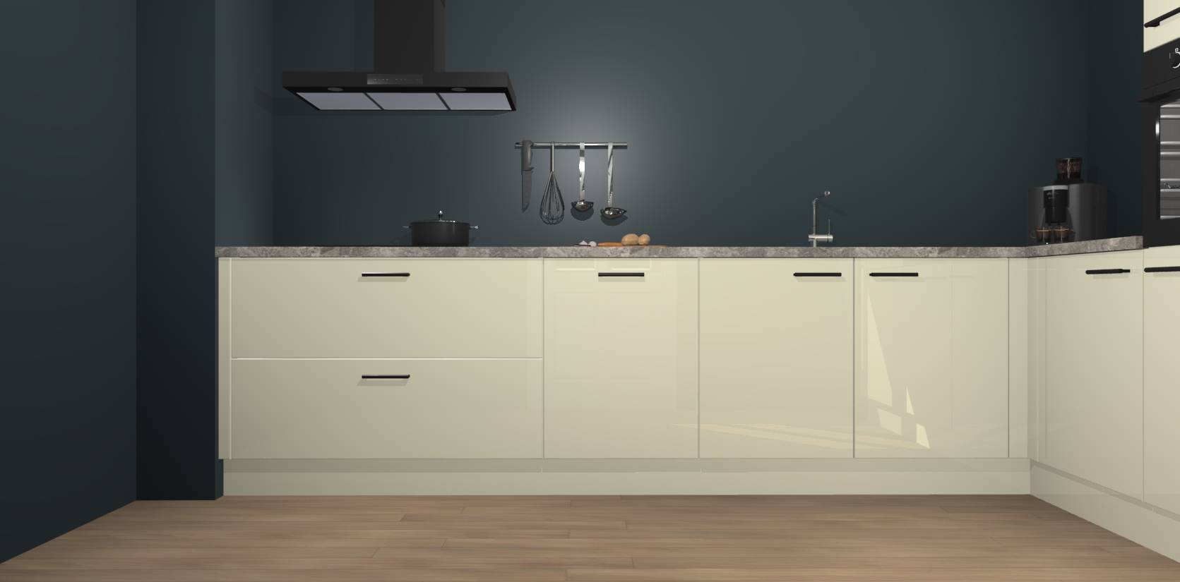 Inclusief plinten, stelpoten en werkblad