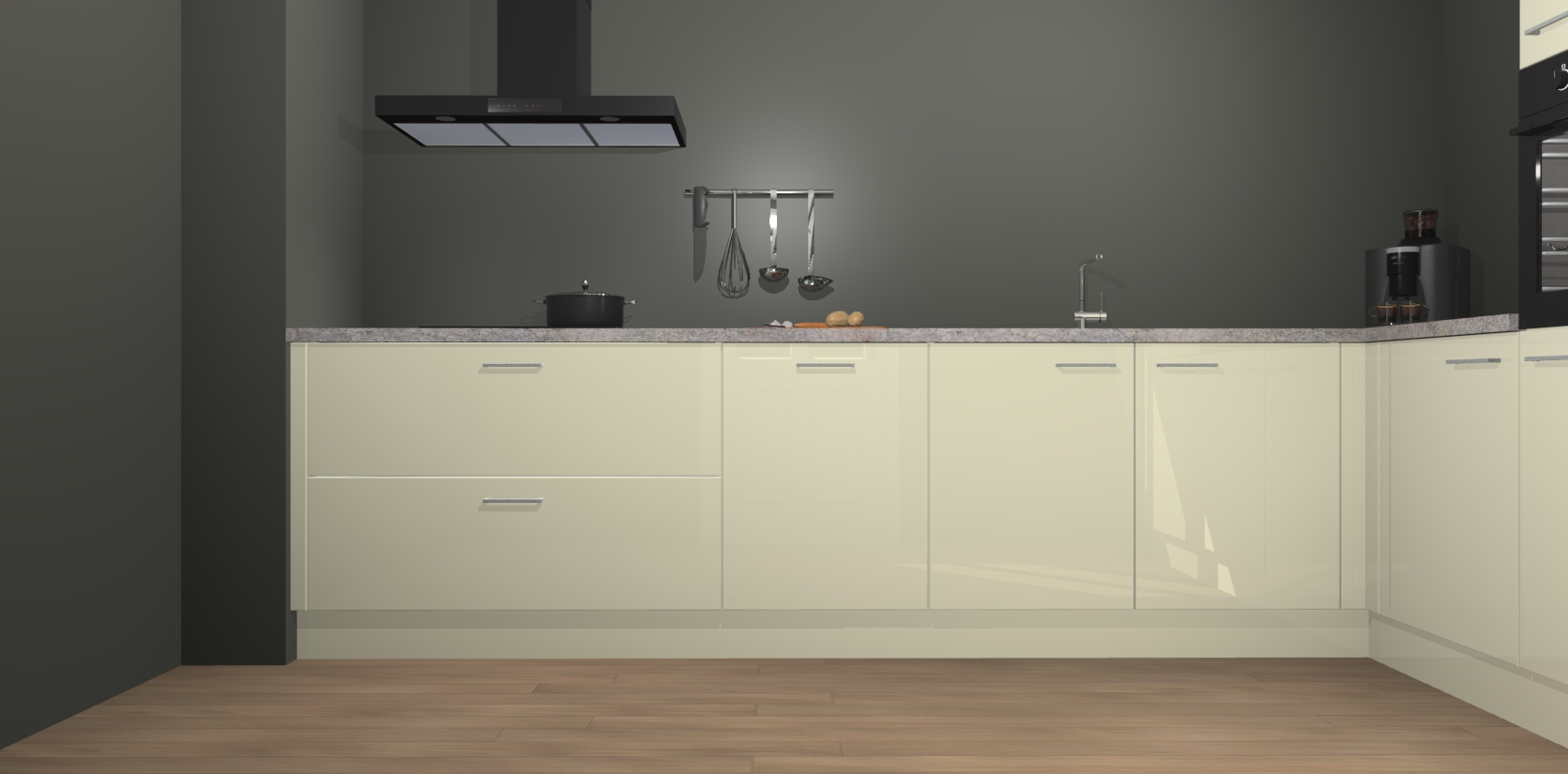Inclusief plinten, stelpoten en werkblad