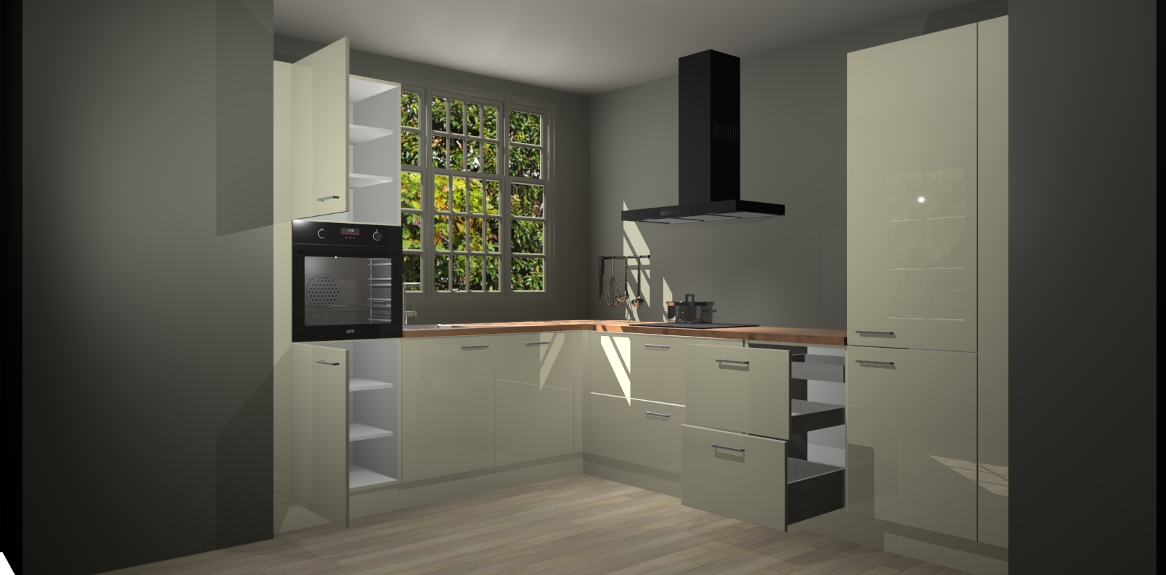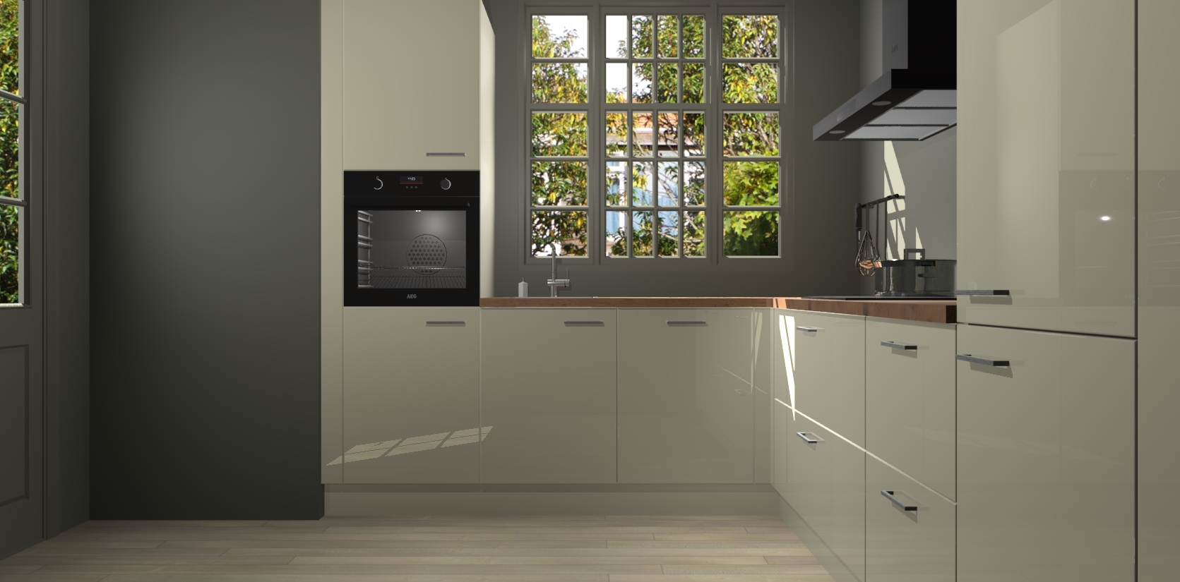 Met een modern, tijdloos design en ruime opslagruimte, zult u zich in no-time thuis voelen in uw nieuwe keuken. Uw leven wordt eenvoudiger met de soft-close deuren die voor het ultieme stille comfort zorgen - geen geluid dat u stoort terwijl u kookt. Ook is de keuken voorzien van 5 ingebouwde apparaten: een oven, inductie kookplaat, afzuigkap, vaatwasser en koelkast. Deze kunnen gemakkelijk na bestelling worden bijgewerkt naar AEG - waardoor uw luxe ervaring compleet is.