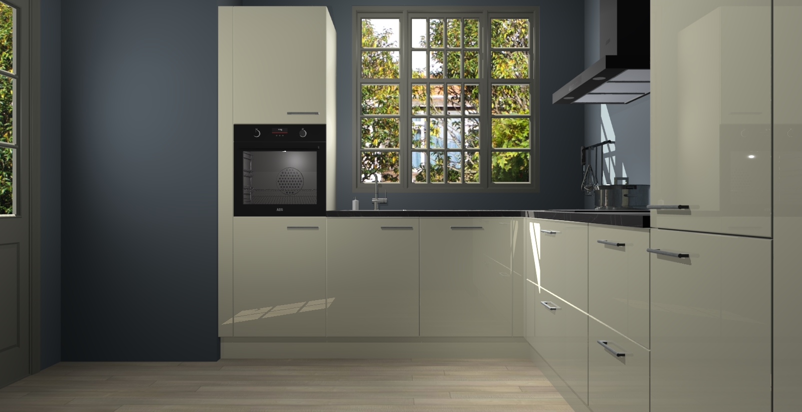Met een modern, tijdloos design en ruime opslagruimte, zult u zich in no-time thuis voelen in uw nieuwe keuken. Uw leven wordt eenvoudiger met de soft-close deuren die voor het ultieme stille comfort zorgen - geen geluid dat u stoort terwijl u kookt. Ook is de keuken voorzien van 5 ingebouwde apparaten: een oven, inductie kookplaat, afzuigkap, vaatwasser en koelkast. Deze kunnen gemakkelijk na bestelling worden bijgewerkt naar AEG - waardoor uw luxe ervaring compleet is.