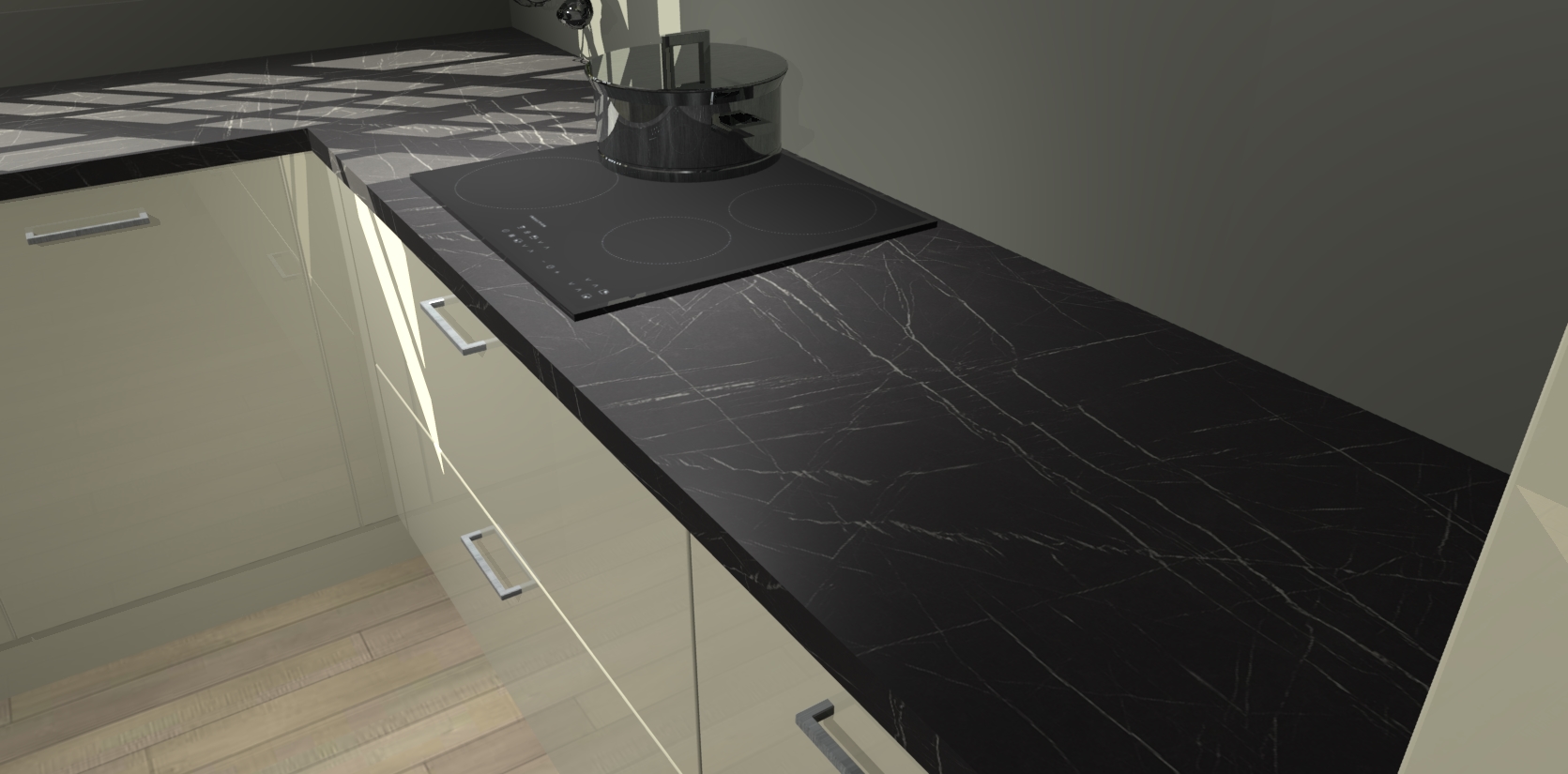 - Bij een hoekwerkblad zijn de hoeken in gevreesd en op maat gemaakt