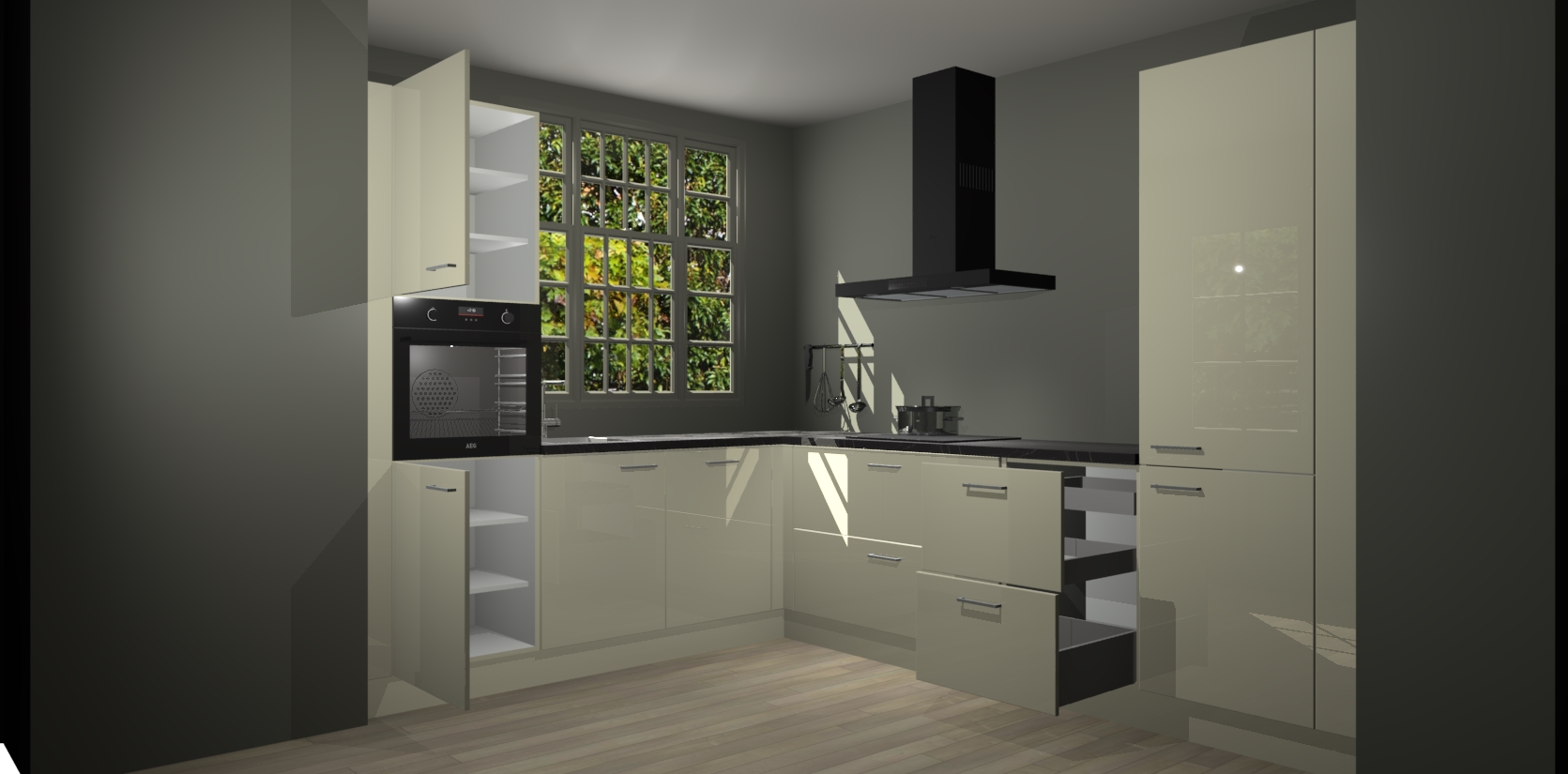 Met een modern, tijdloos design en ruime opslagruimte, zult u zich in no-time thuis voelen in uw nieuwe keuken. Uw leven wordt eenvoudiger met de soft-close deuren die voor het ultieme stille comfort zorgen - geen geluid dat u stoort terwijl u kookt. Ook is de keuken voorzien van 5 ingebouwde apparaten: een oven, inductie kookplaat, afzuigkap, vaatwasser en koelkast. Deze kunnen gemakkelijk na bestelling worden bijgewerkt naar AEG - waardoor uw luxe ervaring compleet is.
