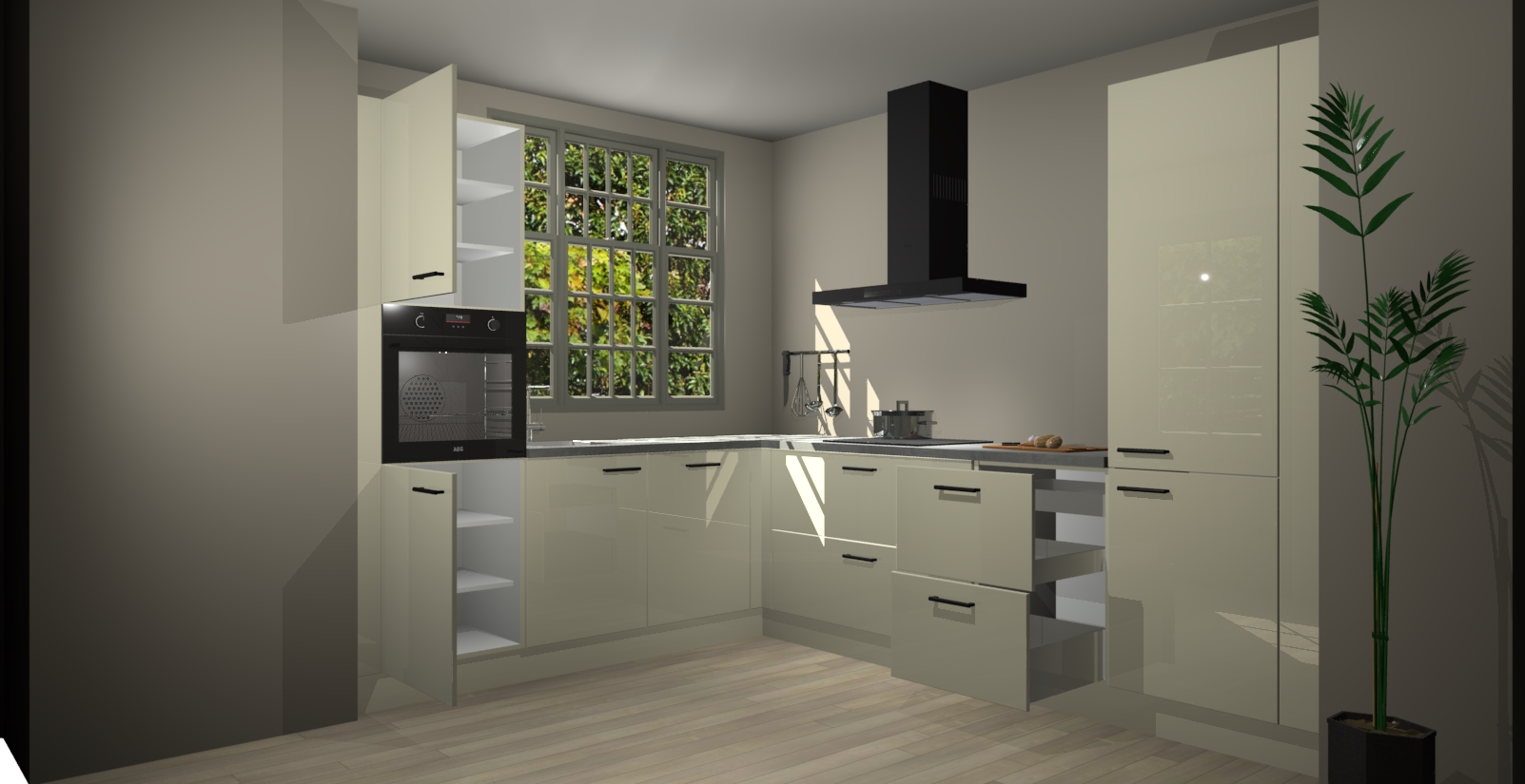 Met een modern, tijdloos design en ruime opslagruimte, zult u zich in no-time thuis voelen in uw nieuwe keuken. Uw leven wordt eenvoudiger met de soft-close deuren die voor het ultieme stille comfort zorgen - geen geluid dat u stoort terwijl u kookt. Ook is de keuken voorzien van 5 ingebouwde apparaten: een oven, inductie kookplaat, afzuigkap, vaatwasser en koelkast. Deze kunnen gemakkelijk na bestelling worden bijgewerkt naar AEG - waardoor uw luxe ervaring compleet is.