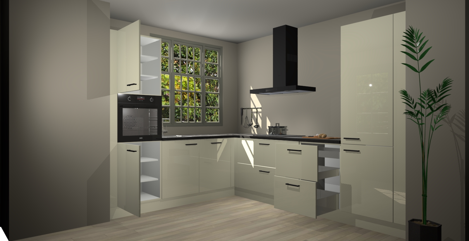 Met een modern, tijdloos design en ruime opslagruimte, zult u zich in no-time thuis voelen in uw nieuwe keuken. Uw leven wordt eenvoudiger met de soft-close deuren die voor het ultieme stille comfort zorgen - geen geluid dat u stoort terwijl u kookt. Ook is de keuken voorzien van 5 ingebouwde apparaten: een oven, inductie kookplaat, afzuigkap, vaatwasser en koelkast. Deze kunnen gemakkelijk na bestelling worden bijgewerkt naar AEG - waardoor uw luxe ervaring compleet is.