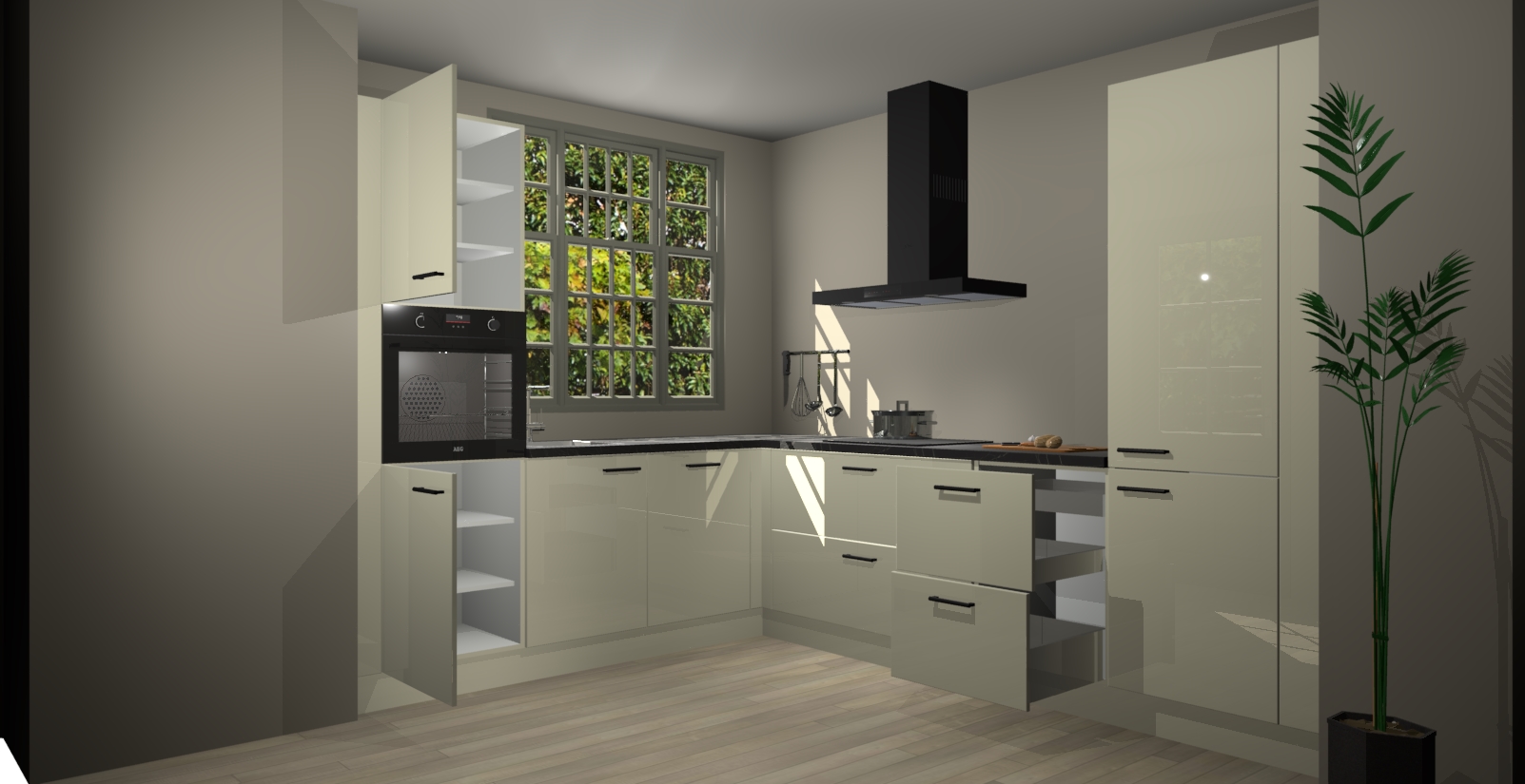Met een modern, tijdloos design en ruime opslagruimte, zult u zich in no-time thuis voelen in uw nieuwe keuken. Uw leven wordt eenvoudiger met de soft-close deuren die voor het ultieme stille comfort zorgen - geen geluid dat u stoort terwijl u kookt. Ook is de keuken voorzien van 5 ingebouwde apparaten: een oven, inductie kookplaat, afzuigkap, vaatwasser en koelkast. Deze kunnen gemakkelijk na bestelling worden bijgewerkt naar AEG - waardoor uw luxe ervaring compleet is.