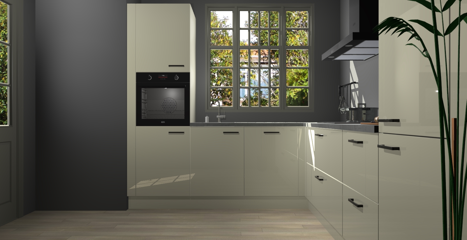 Met een modern, tijdloos design en ruime opslagruimte, zult u zich in no-time thuis voelen in uw nieuwe keuken. Uw leven wordt eenvoudiger met de soft-close deuren die voor het ultieme stille comfort zorgen - geen geluid dat u stoort terwijl u kookt. Ook is de keuken voorzien van 5 ingebouwde apparaten: een oven, inductie kookplaat, afzuigkap, vaatwasser en koelkast. Deze kunnen gemakkelijk na bestelling worden bijgewerkt naar AEG - waardoor uw luxe ervaring compleet is.