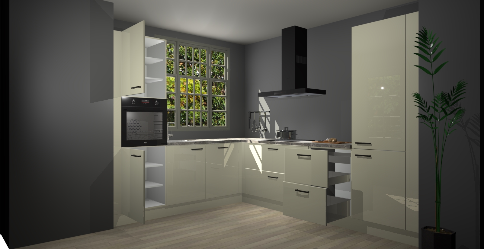 Met een modern, tijdloos design en ruime opslagruimte, zult u zich in no-time thuis voelen in uw nieuwe keuken. Uw leven wordt eenvoudiger met de soft-close deuren die voor het ultieme stille comfort zorgen - geen geluid dat u stoort terwijl u kookt. Ook is de keuken voorzien van 5 ingebouwde apparaten: een oven, inductie kookplaat, afzuigkap, vaatwasser en koelkast. Deze kunnen gemakkelijk na bestelling worden bijgewerkt naar AEG - waardoor uw luxe ervaring compleet is.