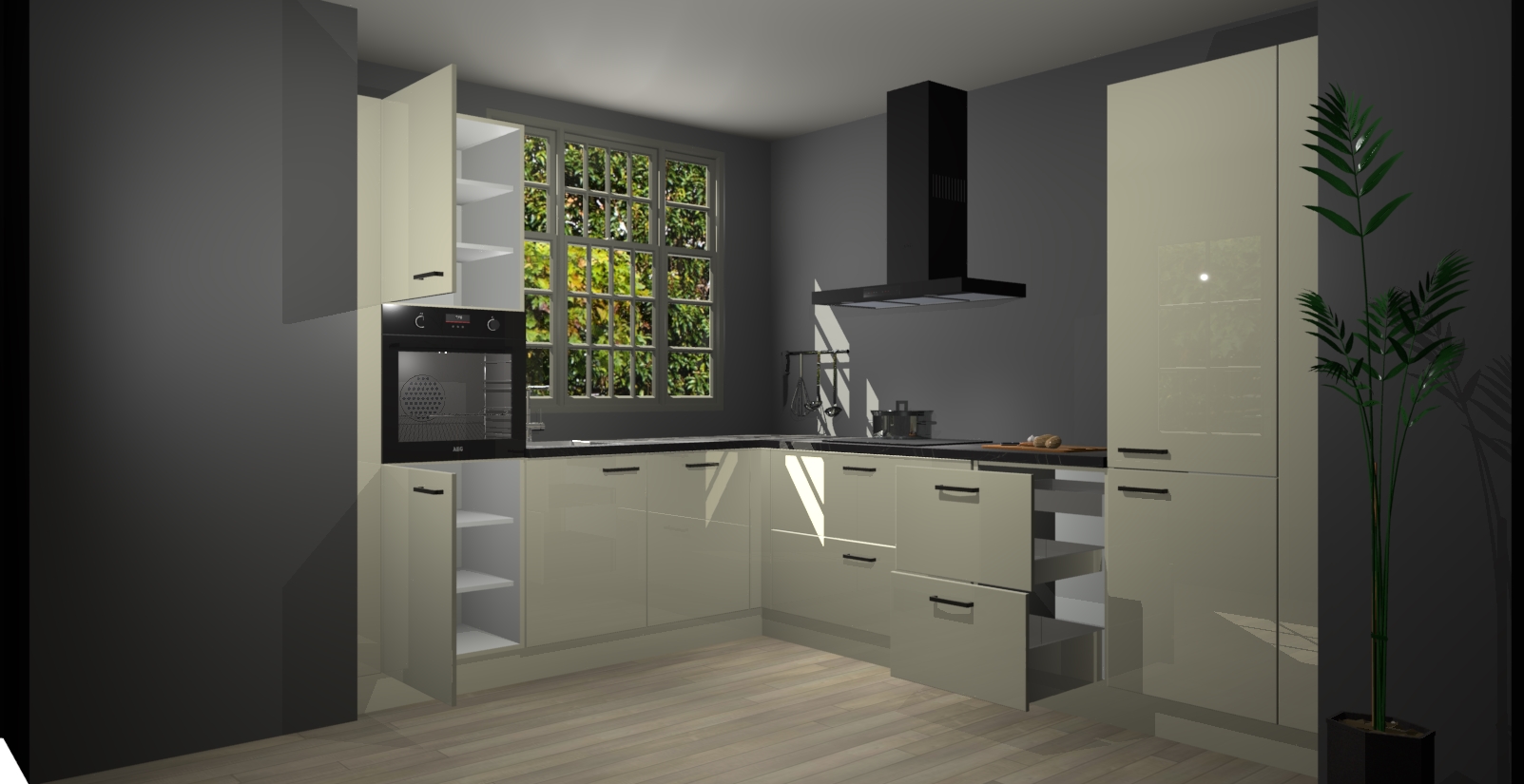Met een modern, tijdloos design en ruime opslagruimte, zult u zich in no-time thuis voelen in uw nieuwe keuken. Uw leven wordt eenvoudiger met de soft-close deuren die voor het ultieme stille comfort zorgen - geen geluid dat u stoort terwijl u kookt. Ook is de keuken voorzien van 5 ingebouwde apparaten: een oven, inductie kookplaat, afzuigkap, vaatwasser en koelkast. Deze kunnen gemakkelijk na bestelling worden bijgewerkt naar AEG - waardoor uw luxe ervaring compleet is.