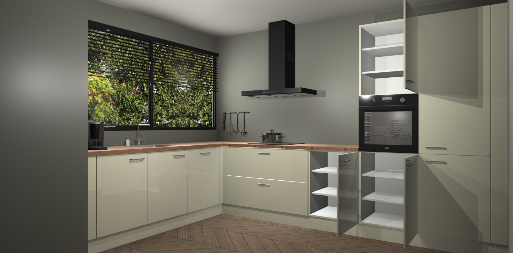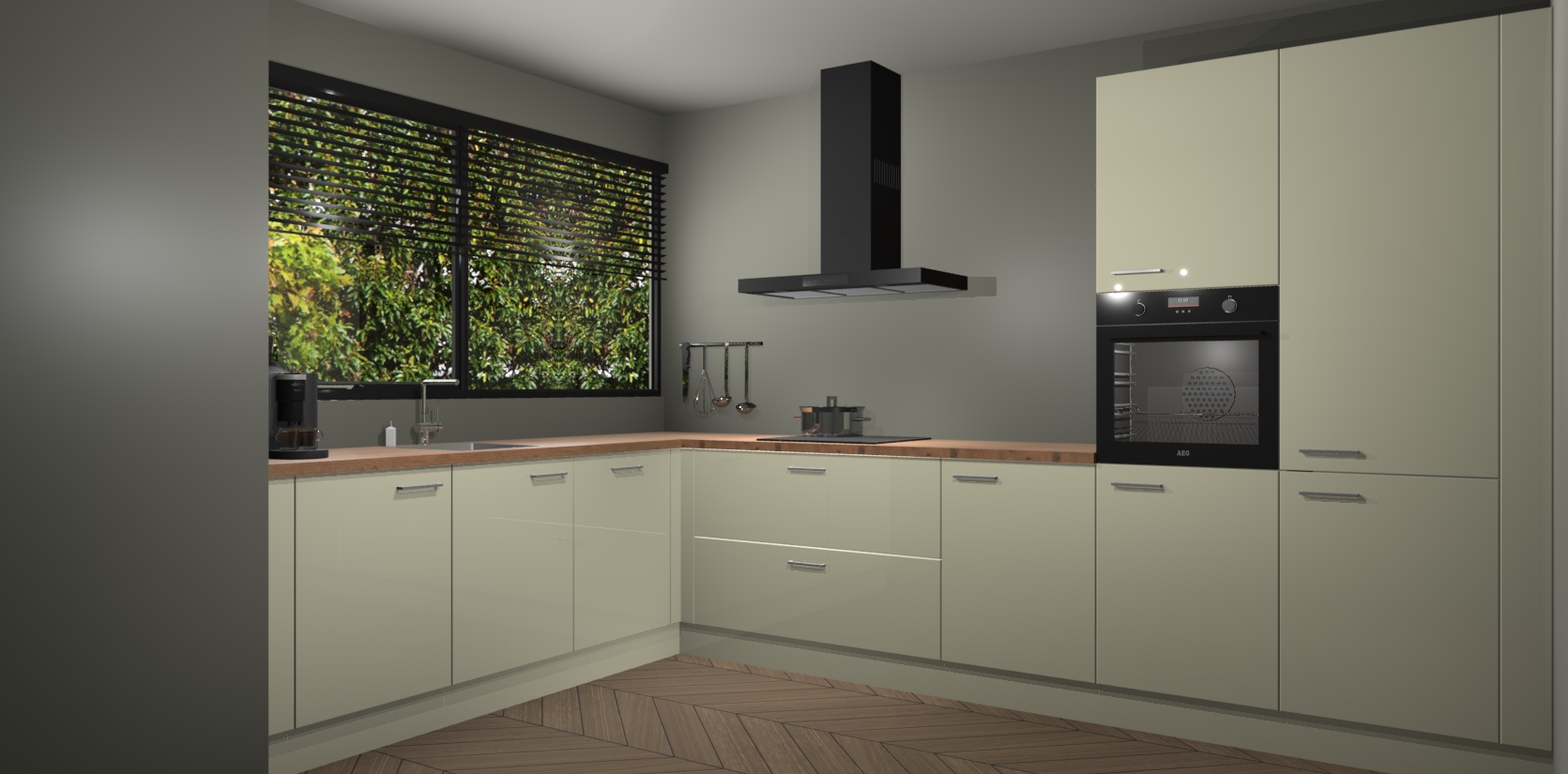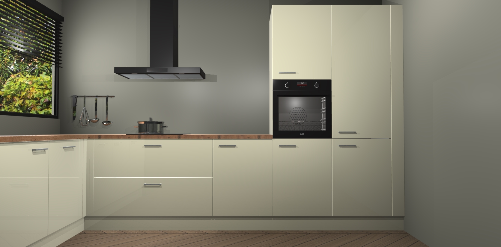 Met een modern, tijdloos design en ruime opslagruimte, zult u zich in no-time thuis voelen in uw nieuwe keuken. Uw leven wordt eenvoudiger met de soft-close deuren die voor het ultieme stille comfort zorgen - geen geluid dat u stoort terwijl u kookt. Ook is de keuken voorzien van 5 ingebouwde apparaten: een oven, inductie kookplaat, afzuigkap, vaatwasser en koelkast. Deze kunnen gemakkelijk na bestelling worden bijgewerkt naar AEG - waardoor uw luxe ervaring compleet is.