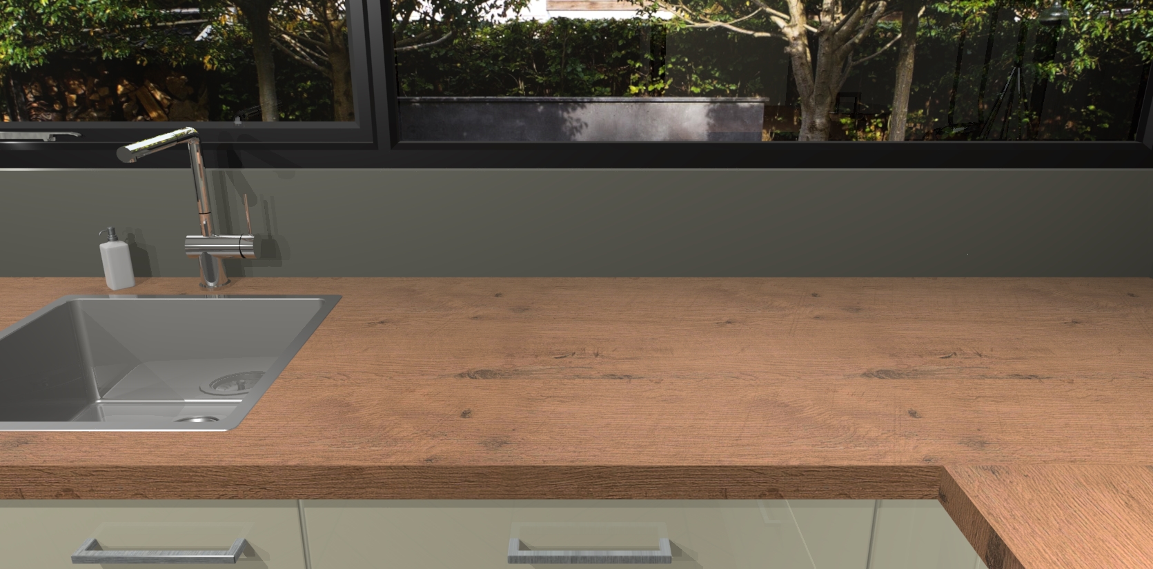 - Bij een hoekwerkblad zijn de hoeken in gevreesd en op maat gemaakt